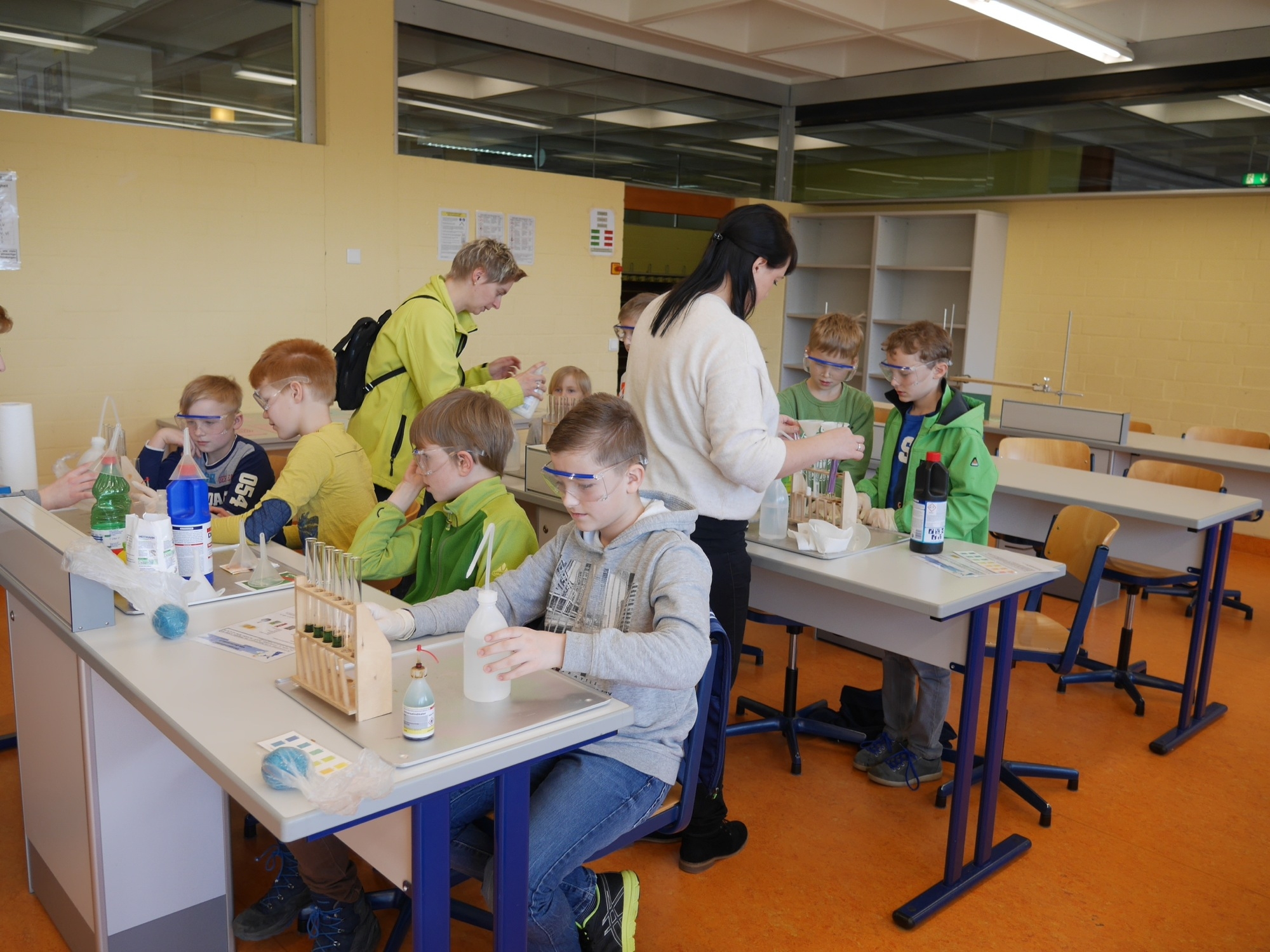 Für die zukünftigen Fünftklässler wurden am Samstagvormittag Workshops angeboten, um ihnen einen kleinen Einblick in den zukünftigen Schulalltag mit den neuen Fächern zu geben. Ein Spiel in der Halle und ein Besuch in der Schülerbücherei rundeten den Informationsgang ab. In den organisatorischen Ablauf der Veranstaltung waren auch Schülerinnen und Schüler der 10.