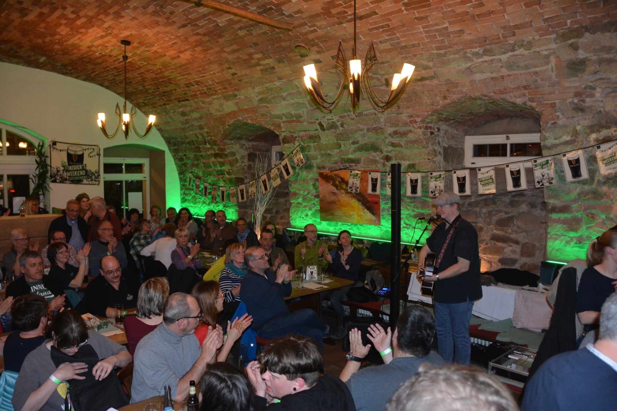 »Der Abend ist absolut genial«, schwärmte auch Musiker Paddy Schmidt, der schon seit Jahrzehnten auf der Bühne steht und inzwischen seine Karriere als Solokünstler gestaltet. Schon in der 1970-Jahren hat es viele deutsch-irische Vereine gegeben, die sich dem gegenseitigen Kulturaustausch gewidmet haben, wusste er zu berichten. Diese Liebe zu Irland sei nach wie vor zu spüren, auch wenn es die Vereine inzwischen nicht mehr gebe. Umso schöner sei es, dass die »Irish Night« eine so große Publikumsresonanz finde. Paddy Schmidt trat vor großem Publikum im restlos vollbesetzten Restaurant »Bräukeller« auf und sorgte vier Stunden lang für ein begeistertes Publikum. »Ich komme immer wieder gerne nach Zell«, bekannte der irische Musiker mit bürgerlichem Namen Harald Kligge, der aus Detmold stammt: »Hier wird ein echter irischer Nationalfeiertag gefeiert!«