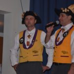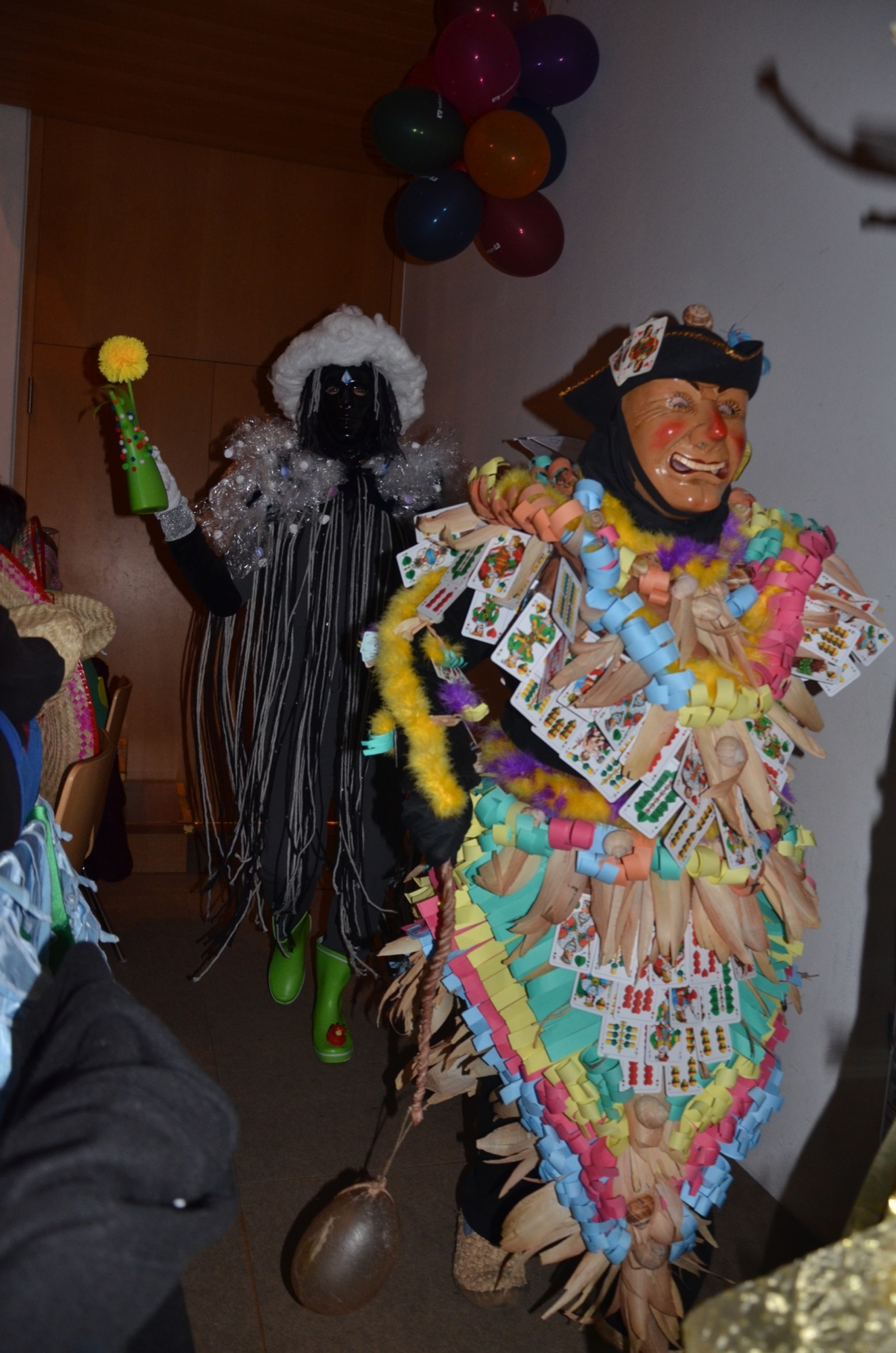 Nach diesen zwei Meisterwerken zeigte sich der Gott der Preismasken schon sehr zufrieden mit seinem Künstler und schickte weitere Zutaten. Was das wohl für Zutaten sind? Natürlich! An einer mannshohen Fasend-Litfaßsäule waren sie alle angebracht: Die vier Dekore der Zeller Narros, ein Bild von jedem Narrenrat, die Wappen der Fasendsgemeinschaften und zwei Holzmasken.