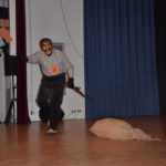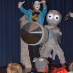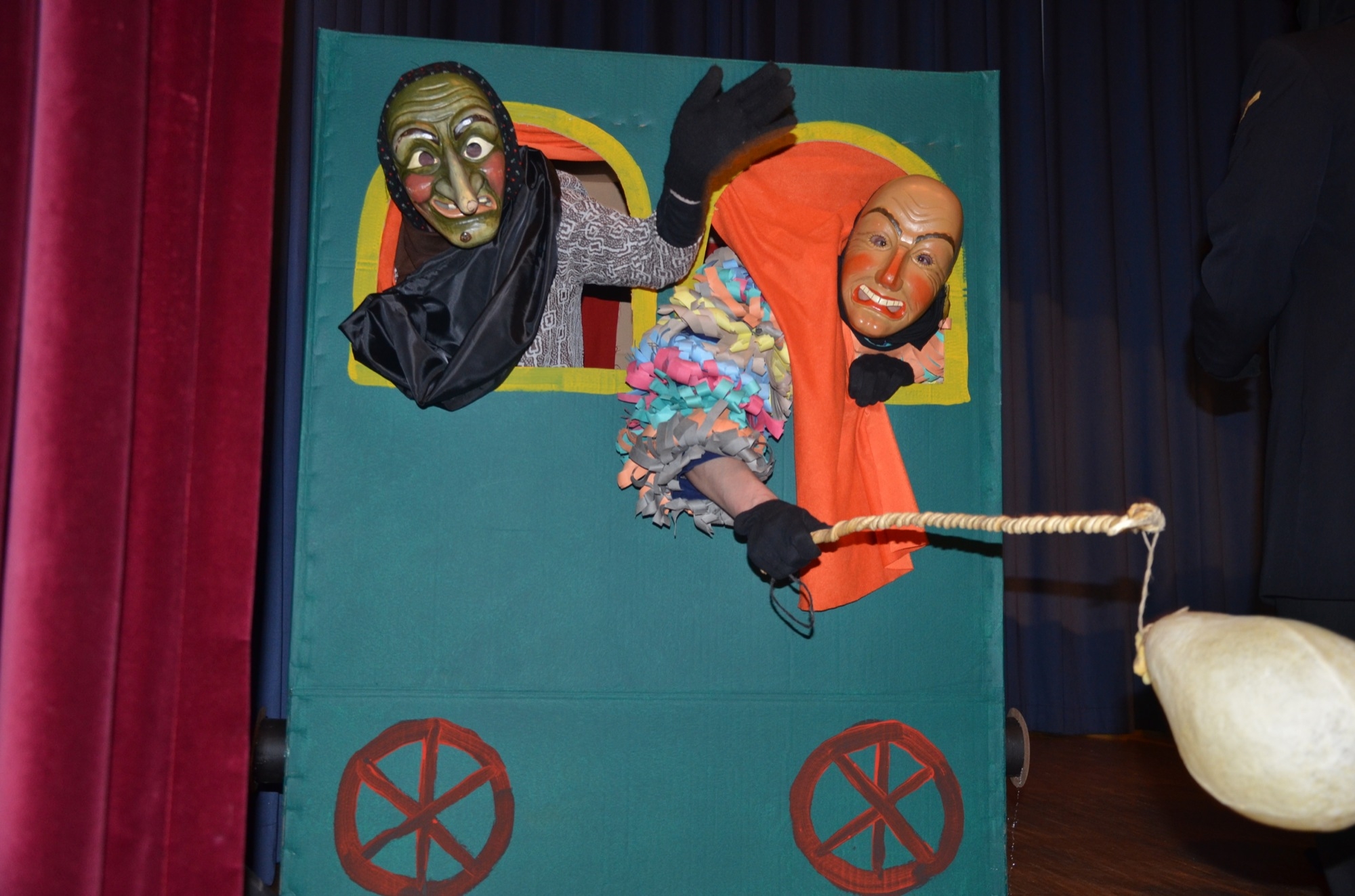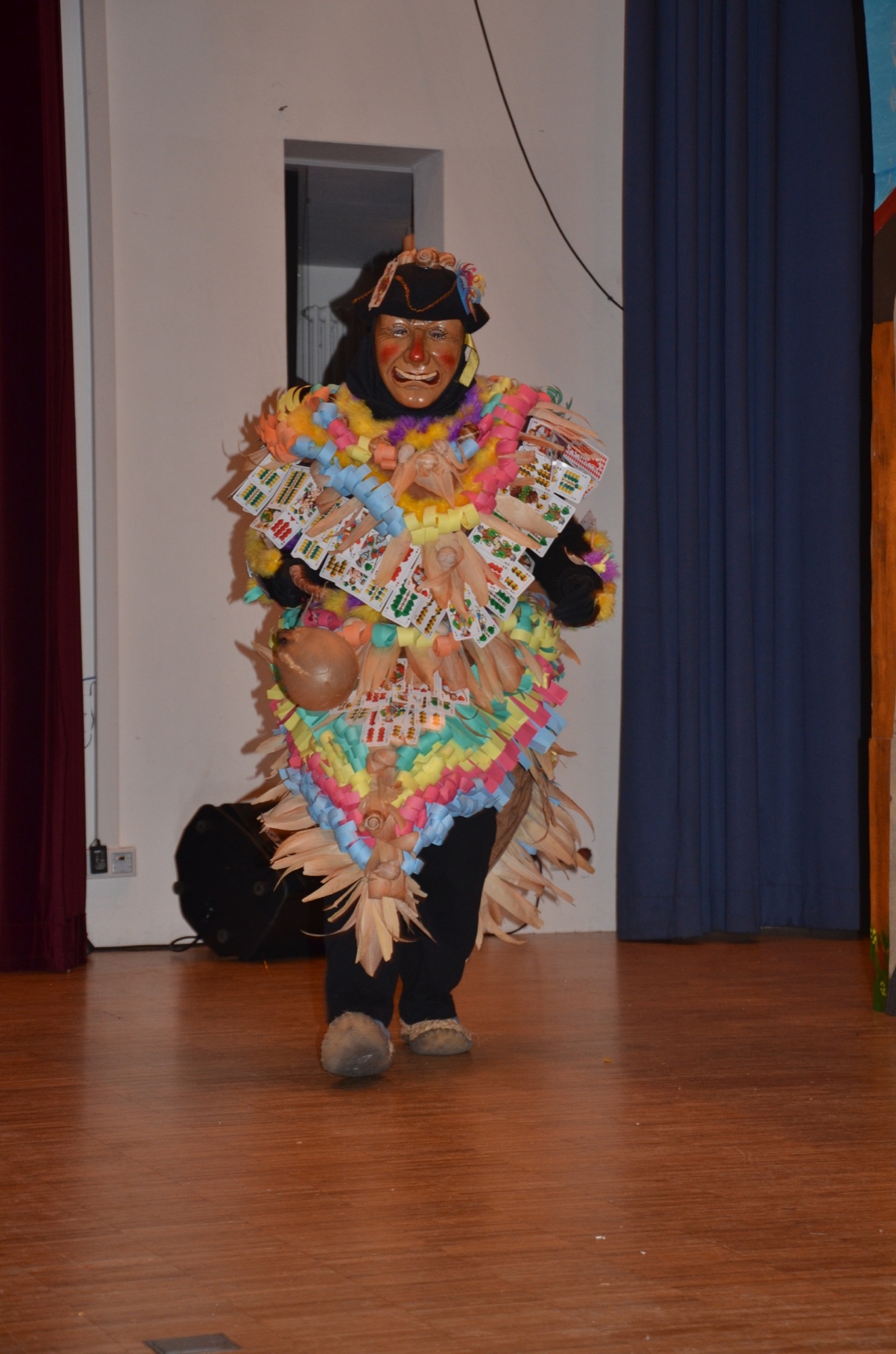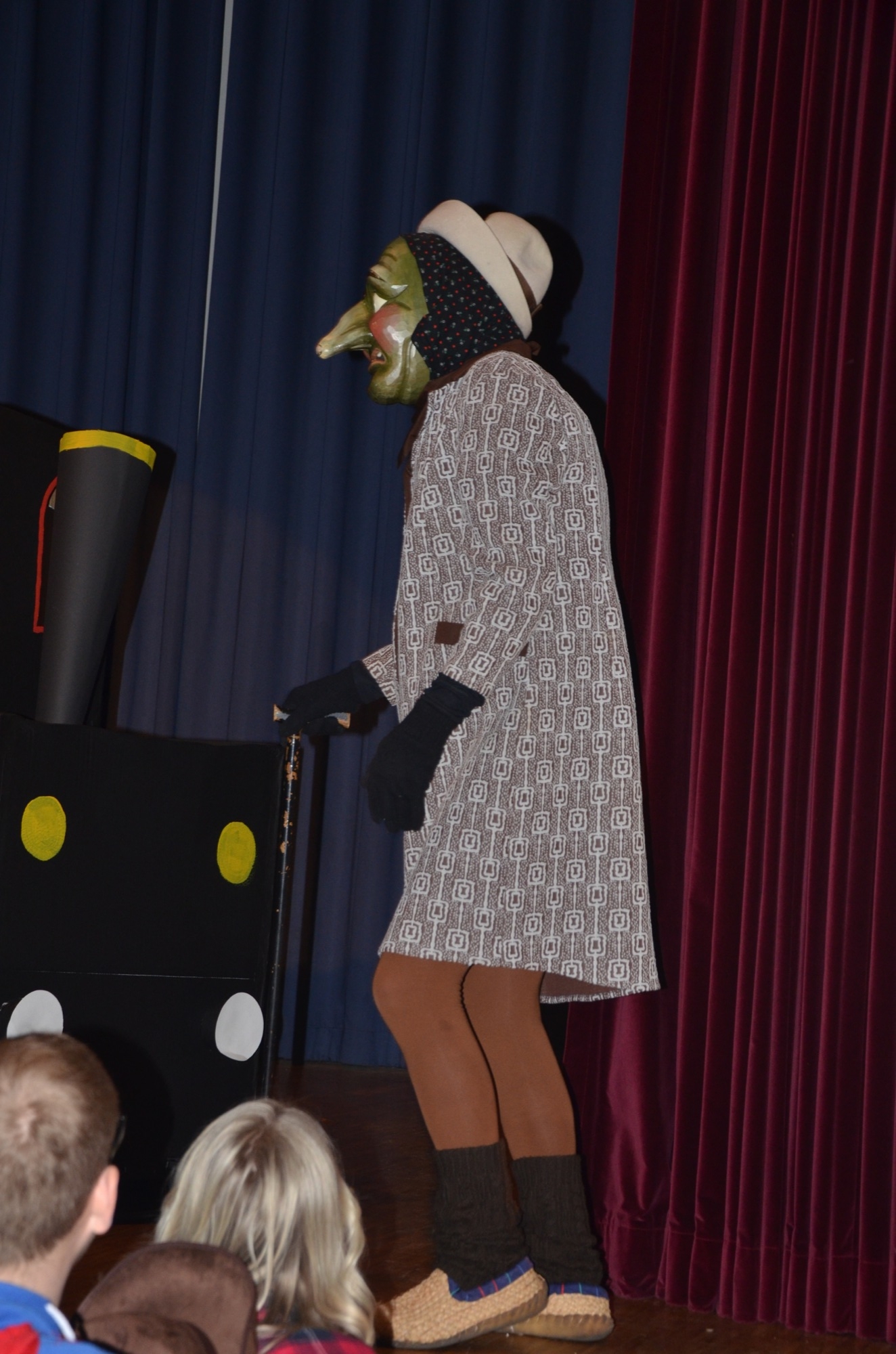 Die Erzählerstimme sprang an den Anfang aller Dinge, als »Gott die Fasend schuf«. Künstler Lugi, von Gott beauftragt, stieg im seiden-grauen Sakko mit weißer Mozartperücke und silberner Krone auf die Bühne und begann sein erstes Werk: Eine Krake mit großem Kopf, weißen Fangarmen und bunten Noppen. Das lustige Tierchen, dessen Augen nur für den Storchenturm leuchteten, kuschelte sich an das Zeller Wahrzeichen – was für ein Bild!