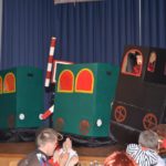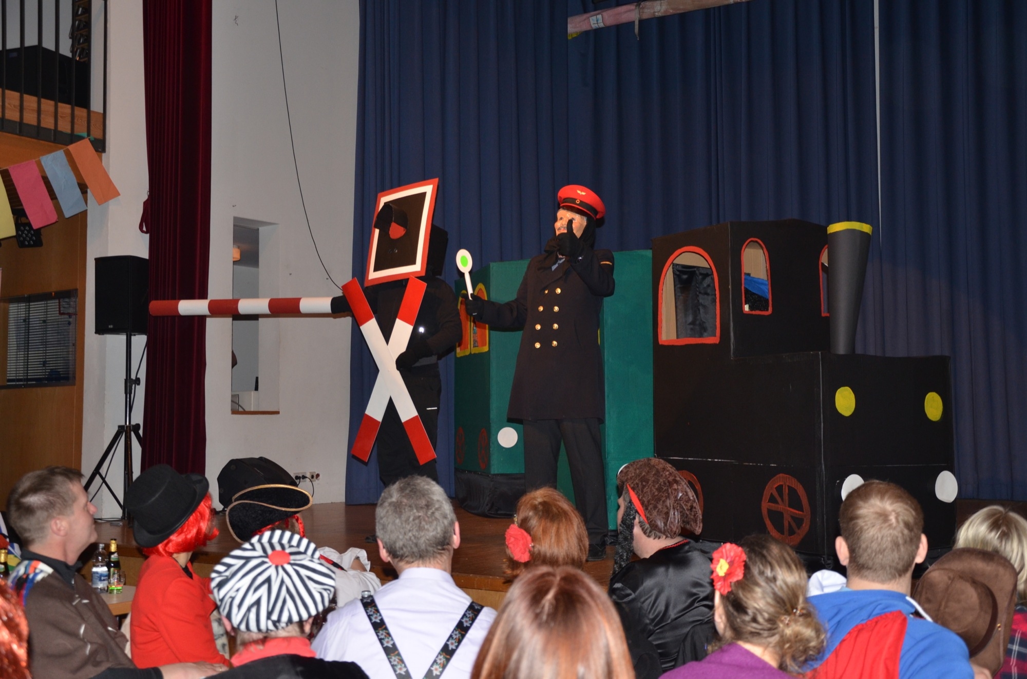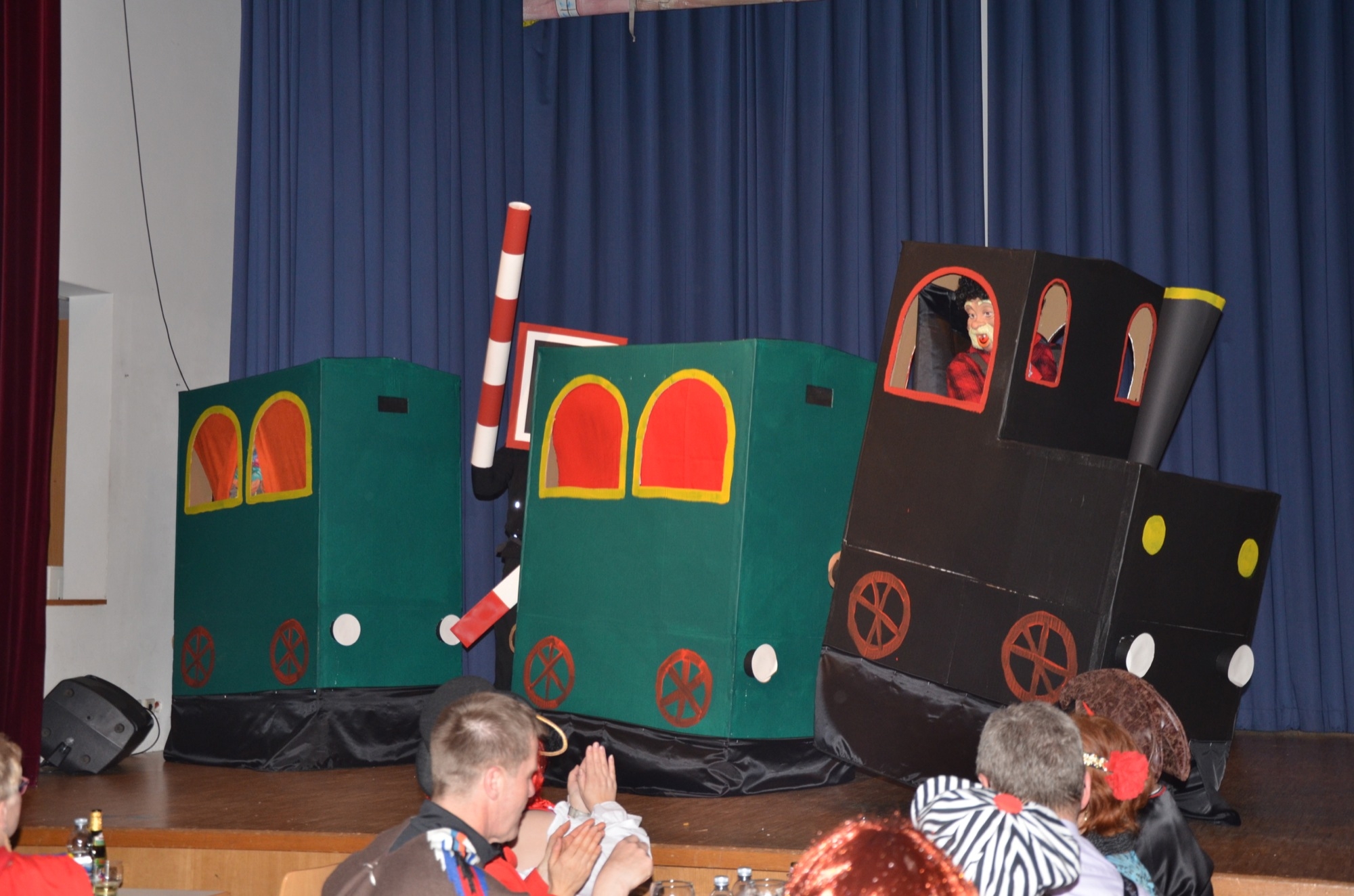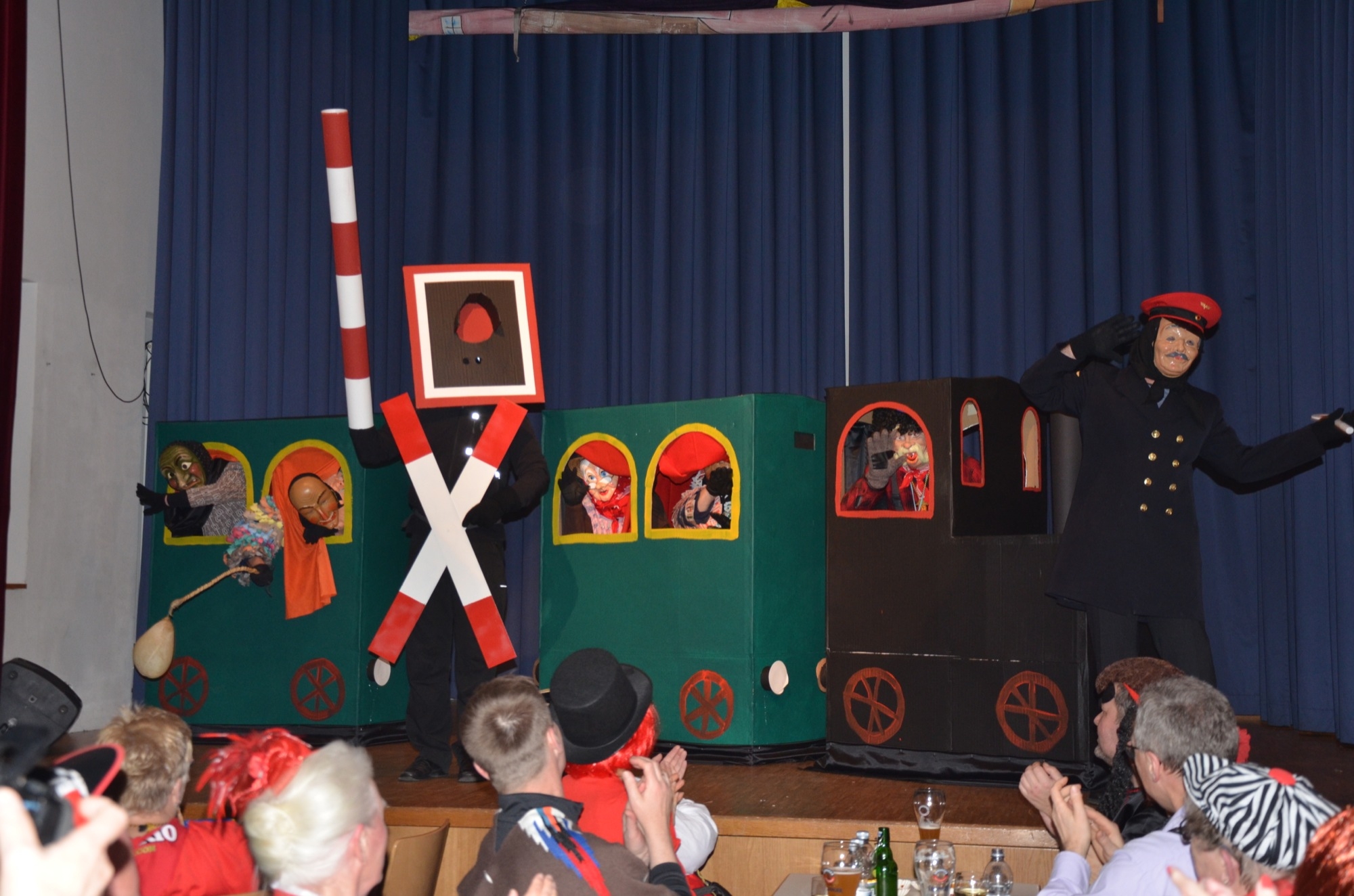 Und schon rollte die schwarze Dampflock der Preismaskengruppe am Bahnhof »Lindenbrugg« ein und zog zwei grüne Wagons hinter sich ins Gleis. Ein »Fasend-Express«, eingerichtet um die Bürger aus »Zell Ost« ins »gelobte Land« zu bringen.