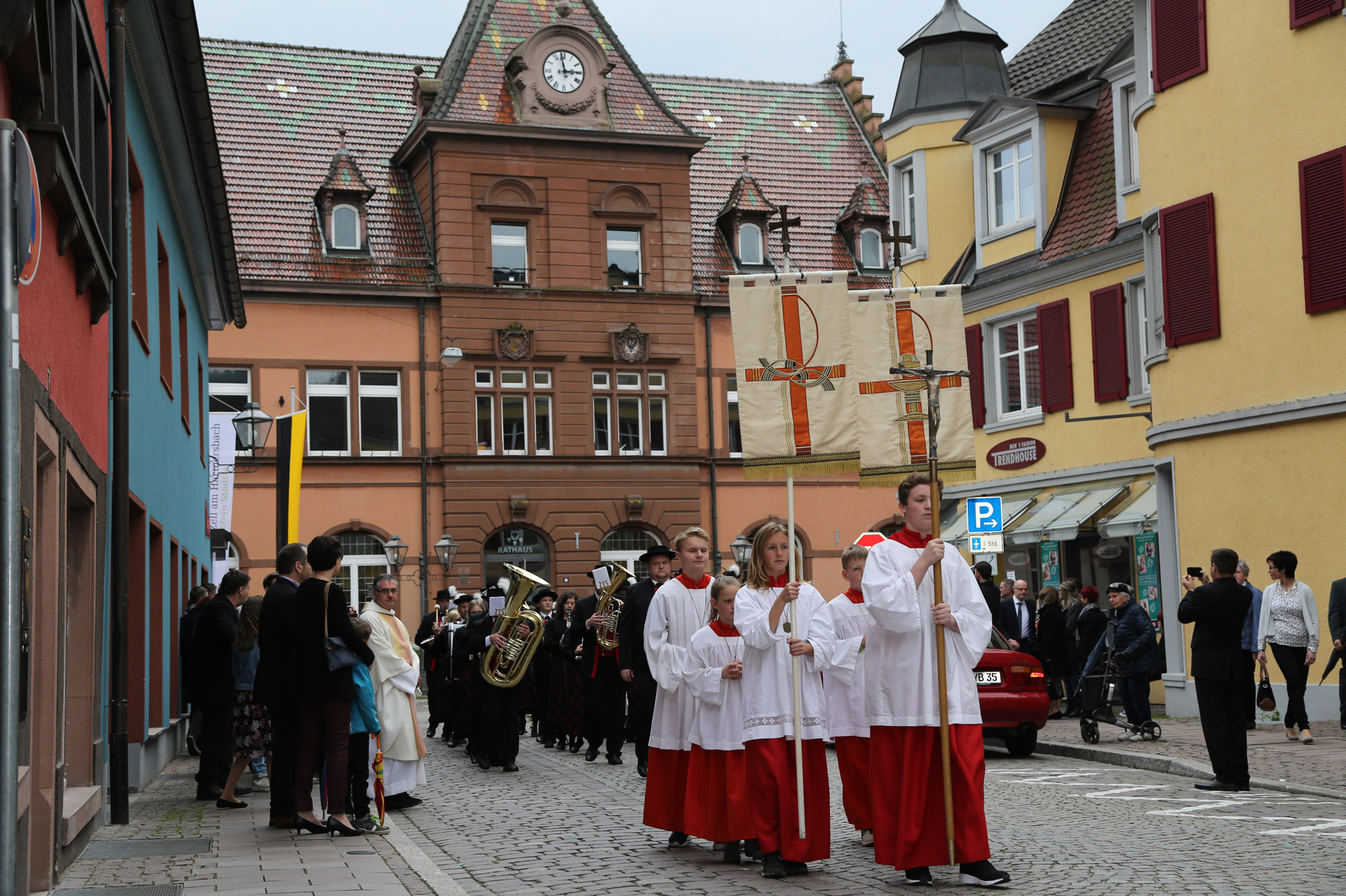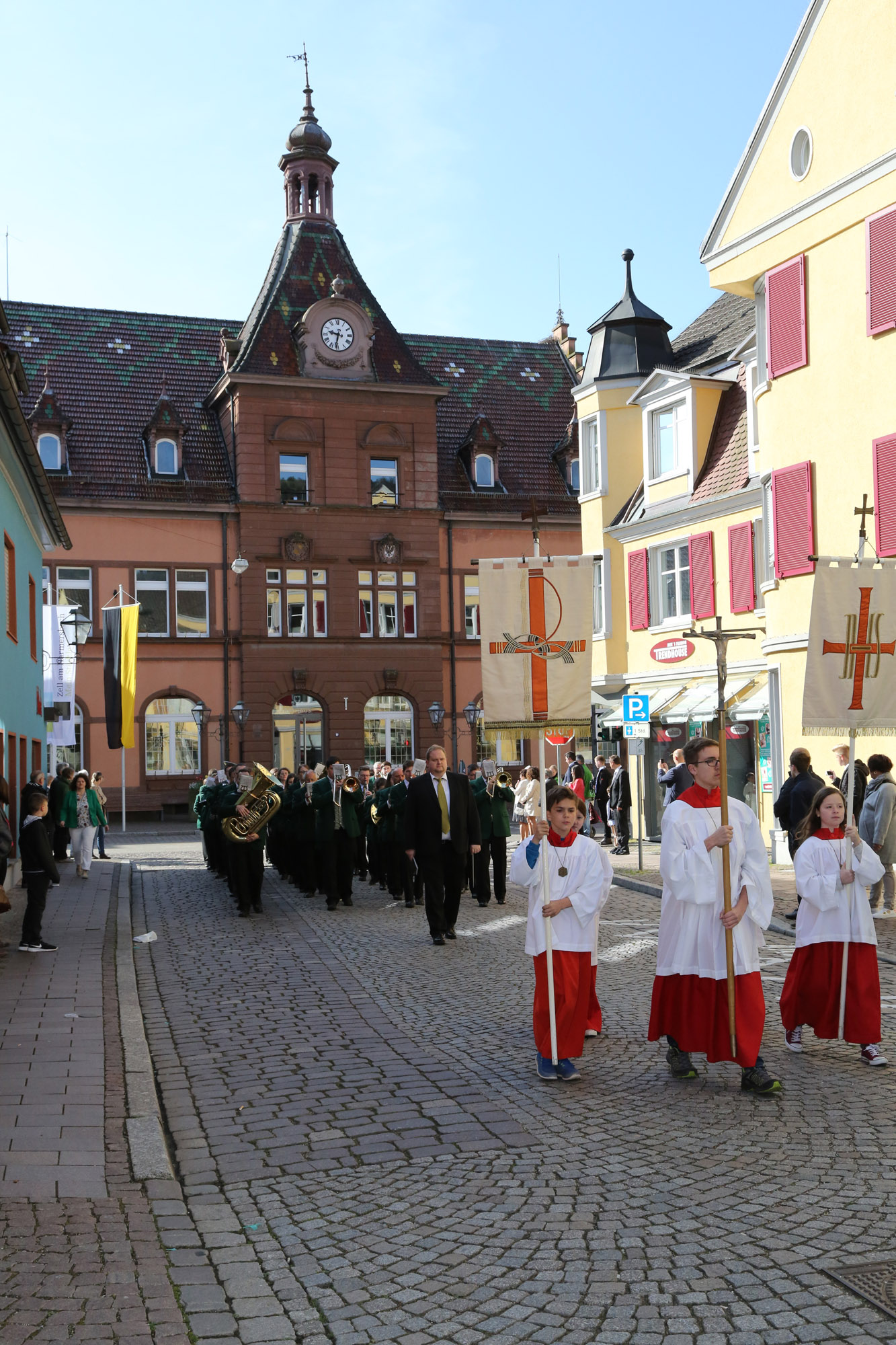 Der Musikverein Unterharmersbach begleitete traditionell die Kinder am Samstagmittag zunächst von Unterharmersbach nach Zell und dann mit einem Choral auf ihrem kurzen Weg vom Rathaus zur Stadtkirche. Am Sonntag übernahm die Stadtkapelle Zell diesen besonderen Dienst.