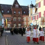 Der gelb-weiße Fahnenschmuck an der Stadtkirche »St. Symphorian« macht es deutlich: In der Kirchengemeinde ist das Wochenende nach Ostern ein besonderes. 57 Mädchen und Jungen empfangen zum ersten Mal die Heilige Eucharistie.