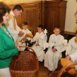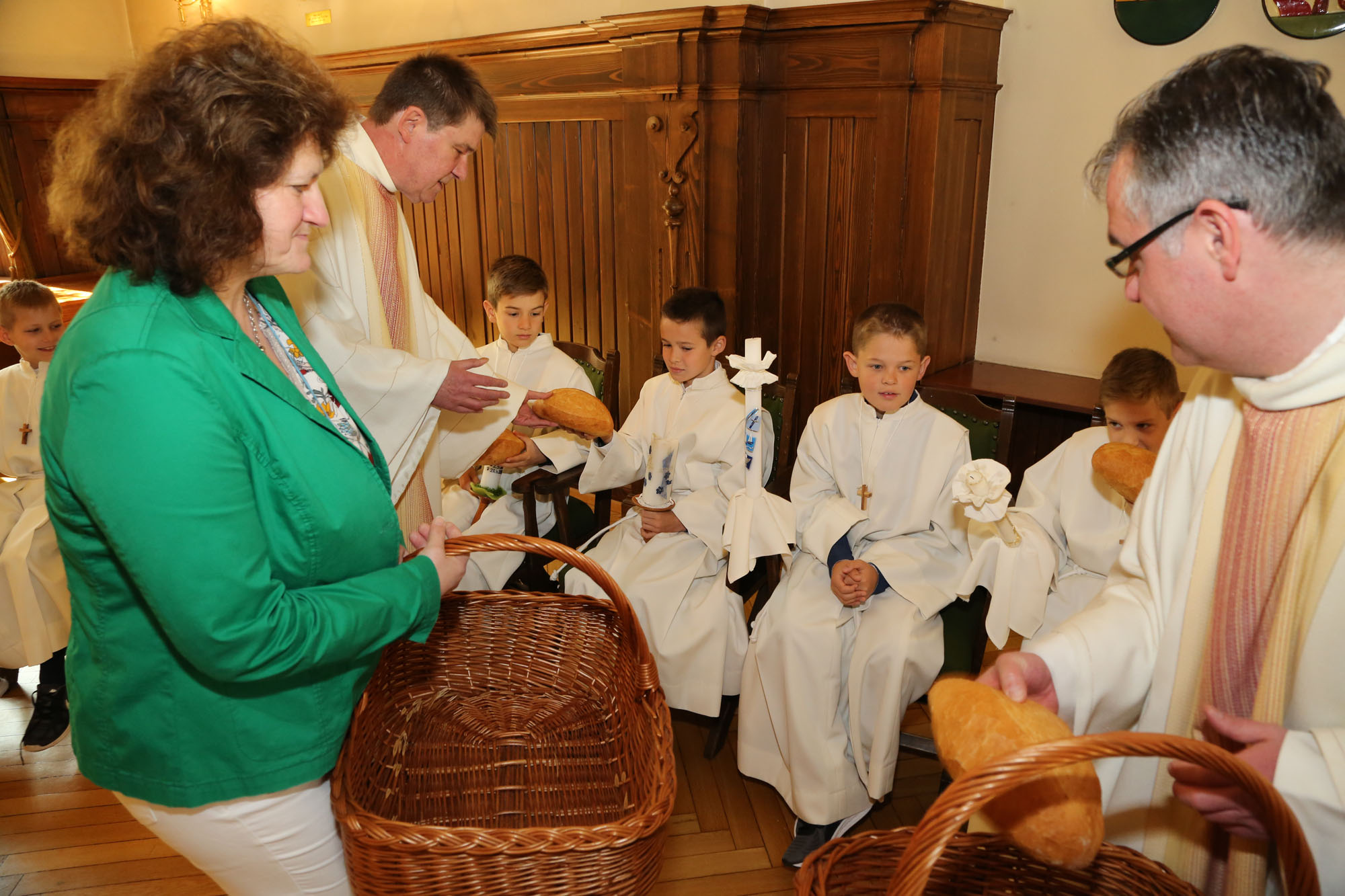 Am Ende der Feier segnete Br. Pirmin die Brote, die jedes Kommunionkind zum Teilen in der Familie erhielt. So wurde der Gedanke des Brotteilens von der Feier in die Familien weitergetragen. Mit dem Schlusslied »Großer Gott wir loben dich« fiel die letzte Nervosität von den Kindern ab und sie freuten sich auf den zweiten großen Teil ihrer Erstkommunion – die Feier mit ihren Familien und Verwandten und natürlich auf die Geschenke! Die Sonne lachte leider nicht an beiden Tagen am Himmel, aber auf jeden Fall in den Herzen der Kinder: »DANKE guter Gott!«