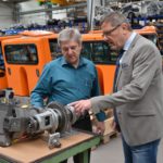 Björn Guggenbühler stellte den Besuchern, unter ihnen auch Bürgermeister Günter Pfundstein und die Vertreter mehrerer Schulen, das Traditionsunternehmen vor, das seine Wurzeln in Nordrach hat und seit dem Jahr 2007 in der modernen Werkshalle in Zell produziert. Früher stellte die Firma Ladog Fahrzeuge für die Landwirtschaft her, heute hat man sich ganz auf die Kommunaltechnik spezialisiert.