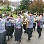 Pfarrer Gerner lud am Ende des Festgottesdienstes zu der weltlichen Feier in die Festhalle »Ritter von Buß« des Bildungszentrums ein. Der Weg dorthin wurde wieder als gemeinsamer Zug mit der Musikkapelle und Bürgerwehr gestaltet.