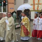 Neupriester Robert Willmann wurde vom Zeller Rathaus in einer Prozession zur Pfarrkirche geleitet. Ministranten und Fahnenträger gingen voraus, gefolgt von den Lektoren, Kommunionhelfern, Diakonen, Gemeindereferenten der Nachbargemeinden, Pfarrer Gerner, Neupriester Robert Willmann und seinen Familienangehörigen. Die Zeller Bürgerwehr, die Trachtenfrauen und die Musikkapelle Unterentersbach gaben dem Zug ein festliches Geleit. Leider regnete es am Sonntagmorgen und so trübten einige Regenschirme das schöne Bild der Prozession. Das THW sorgte für die Sperrung der Hauptstraße und Kirchstraße.