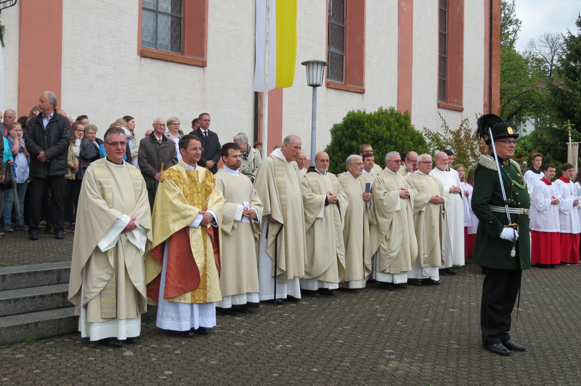 Zehn Konzelebranten, zwei Diakone, Vertreter des Zeller Klosters und viele Lektoren und Kommunionhelfer sowie 20 Ministranten gestalteten den Festgottesdienst. Danach erfolgte der Ehrensalut der Zeller Bürgerwehr auf dem Kirchplatz.