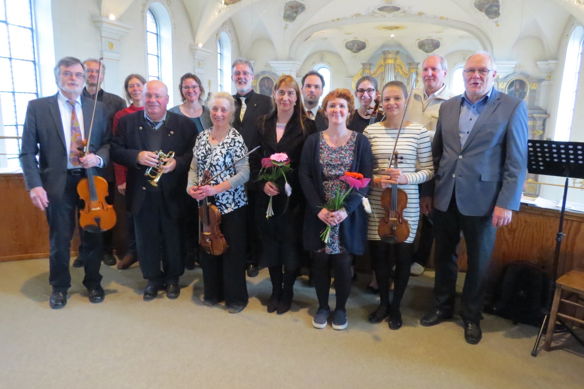 Dirigent Wolfram Dreher hat für die Primiz einen Projektchor aus Mitgliedern der Kirchenchöre aus Zell, Biberach und Oberharmersbach gebildet. Die 60 Sängerinnen und Sänger bildeten mit dem Orchester aus zehn Musikern ein beeindruckendes Ensemble. Die Orchestermesse »Missa Brevis in C-Dur« von Wolfgang Amadeus Mozart wird von den Instrumenten Violine, Bratsche, Cello, Kontrabass, Pauken und Trompeten gespielt. Für die Continuo-Begleitung war Organist Dieter Benson verantwortlich. Konzertmeisterin Odilie Meyer-Siat aus dem Elsass hat den Zeller Kirchenchor schon häufiger begleitet. Die Messe ist eine kompakte, festliche Messe mit nahezu volkstümlichem Charakter. Bei dem überwiegend vom Chor bestimmten Werk übernehmen die Solostimmen lediglich einzelne Abschnitte. Als Solisten wirkten mit: Hannah Heizmann (geb. Dreher, aus Zell), Monika Wartmann-Bührer (Alt, aus Berghaupten), Klaus Haas (Tenor, ursprünglich aus Oberwolfach) und Matthias Schadock (Bass, aus Karlsruhe). Hell erklangen ihre schönen Stimmen von der Orgelempore und füllten mühelos den großen Kirchenraum. Die gute Akustik in der Kirche und die Musikdarbietung auf hohem musikalischen Niveau sorgten für ein besonderes Hörerlebnis.