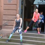»Sportlich« ging es schon vor dem Start zu. Auf dem Kanzleiplatz hatte das Team des Turnvereins Unterharmersbach alle Hände voll zu tun, um den Ansturm der Teilnehmer bei der Anmeldung zu bewältigen. Dann animierten die Trainerin Sonja Eydner vom »Fitmacher« sowie Sina vom »TopLife« die Läuferinnen und Läufer zum Warm-Up.