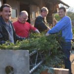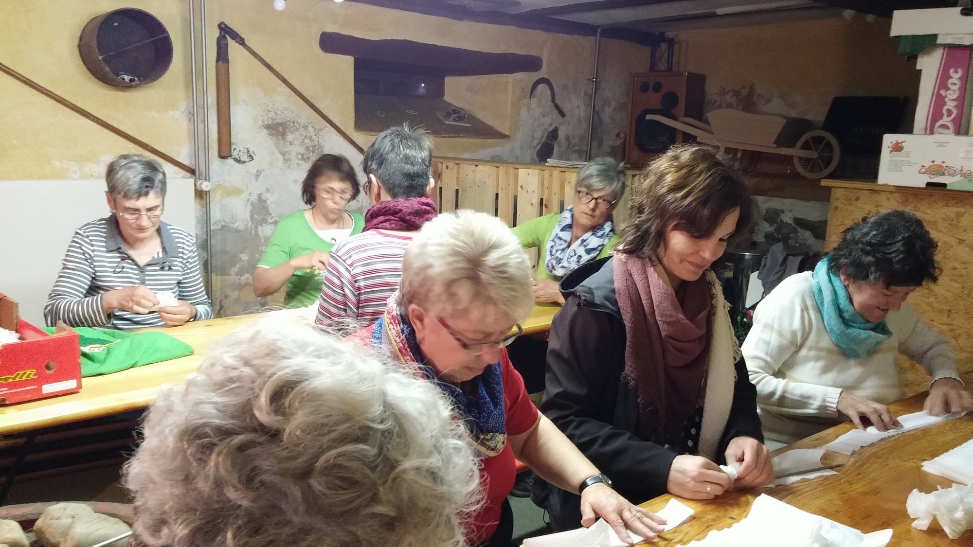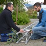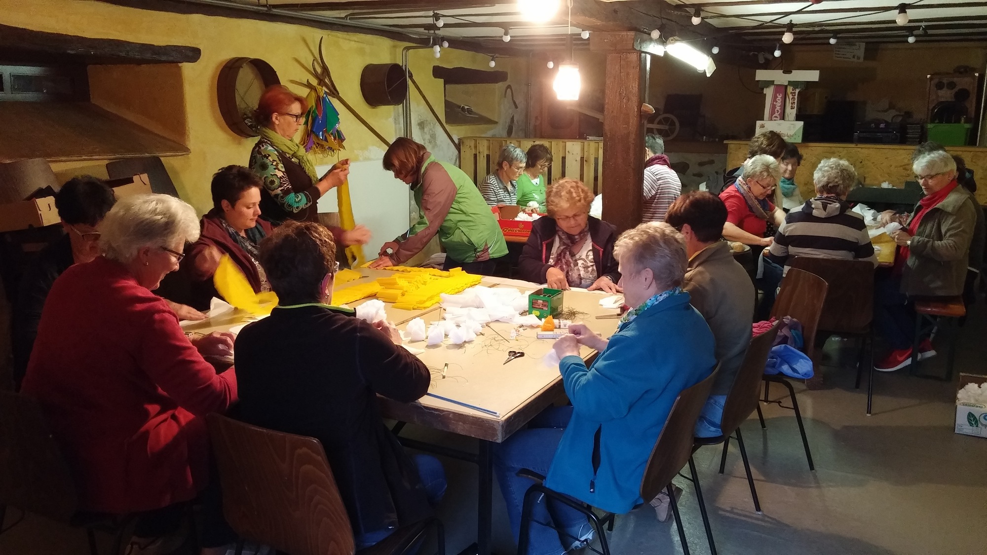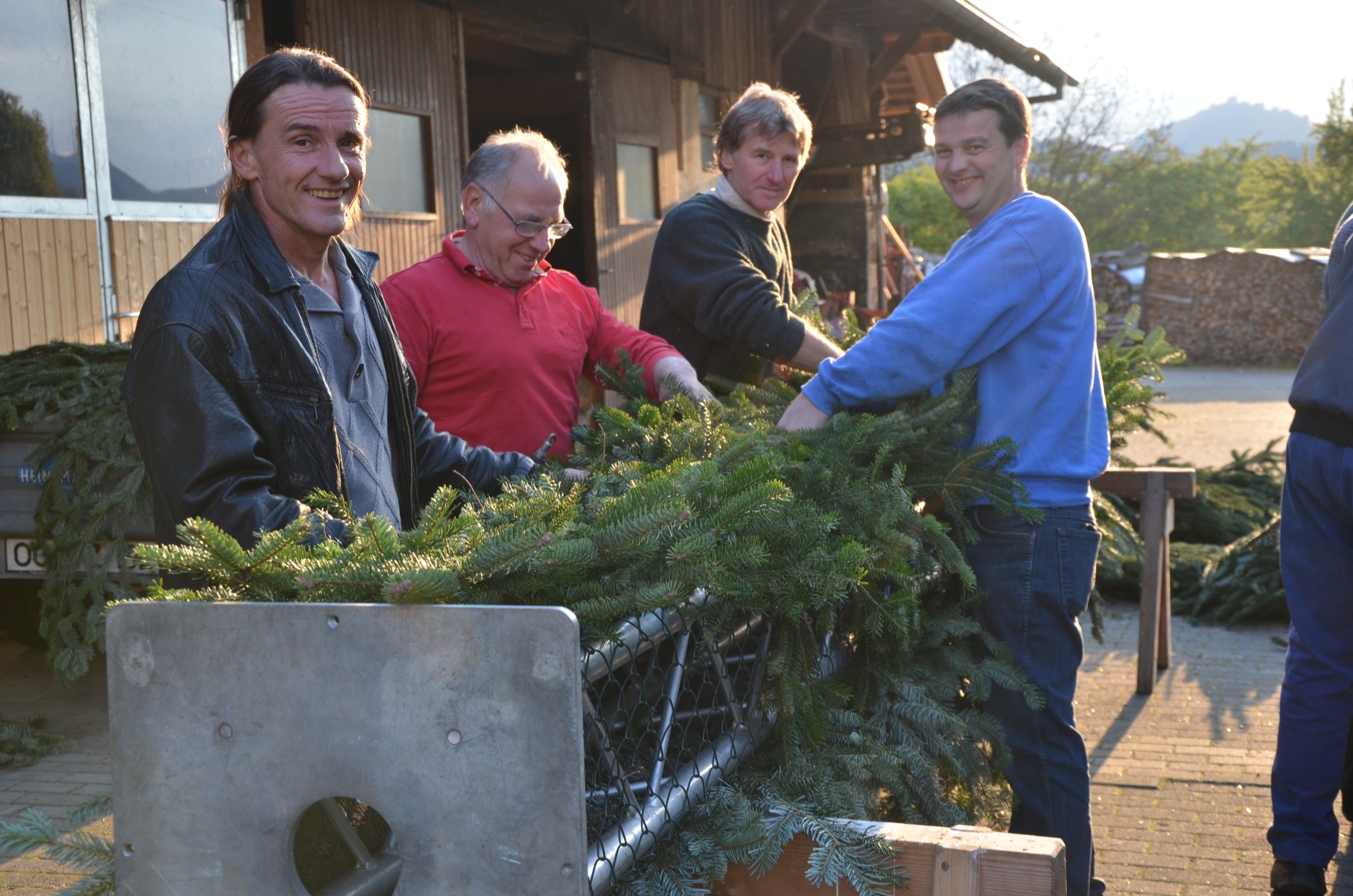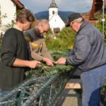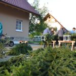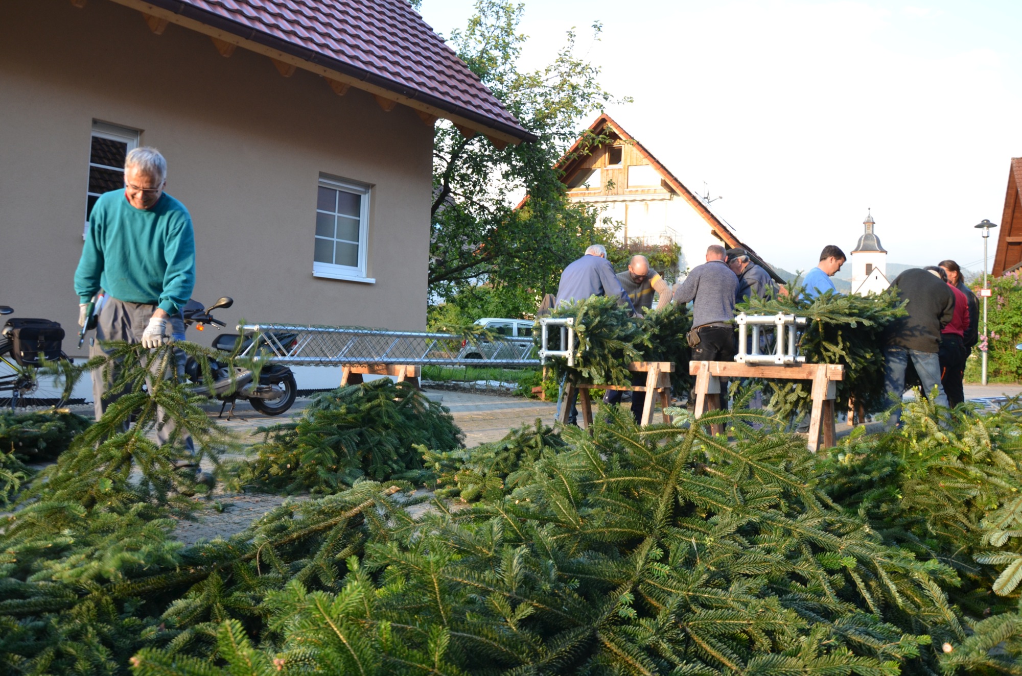 Für die Unterentersbacher Spalierbögen trafen sich 21 Frauen zum Röschen binden. In rekordverdächtigen zwei Stunden wurden im Keller von Familie Sum 800 Röschen aus Krepp-Papier und Draht gefaltet. Ein Männerteam übernahm die vielfältigen Aufgaben rund um den Bau der Spalierbögen. Am vergangenen Freitag lagen Traversen, grüner Maschendraht und frisches grünes Reisig bereit. Auf dem elterlichen Hof von Neupriester Robert Willmann wurde die Konstruktion in einen grünen Mantel gebunden. Zeitgleich gestaltete ein Team passende Schilder mit Schriftzügen im Dorfgemeinschaftshaus. Heute Abend werden die Spalierbögen in Unterentersbach aufgestellt und heißen Primiziant Robert Willmann am Wochenende in seiner Heimat herzlich willkommen.