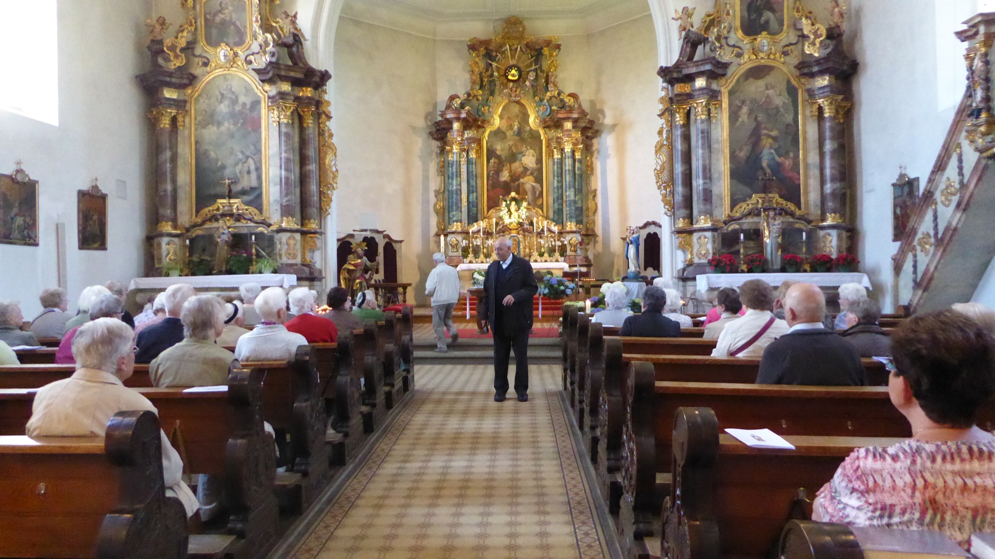 In einer abgesprochenen »kleinen« Führung von Pfarrer Josef Schäfer erfuhren die Senioren Interessantes zum Bau der ersten Kirche im Jahr 1464, zur Geschichte der Wallfahrt, der Außenanlage sowie dem Bau der heutigen 1733 eingeweihten Kirche und deren Ausstattung und Sehenswürdigkeiten. Mit großem Beifall, einer Kollekte und Spende bedankten sich die Senioren und das Altenwerk bei Pfarrer Schäfer für die lehrreiche, aber auch humorvolle Führung.