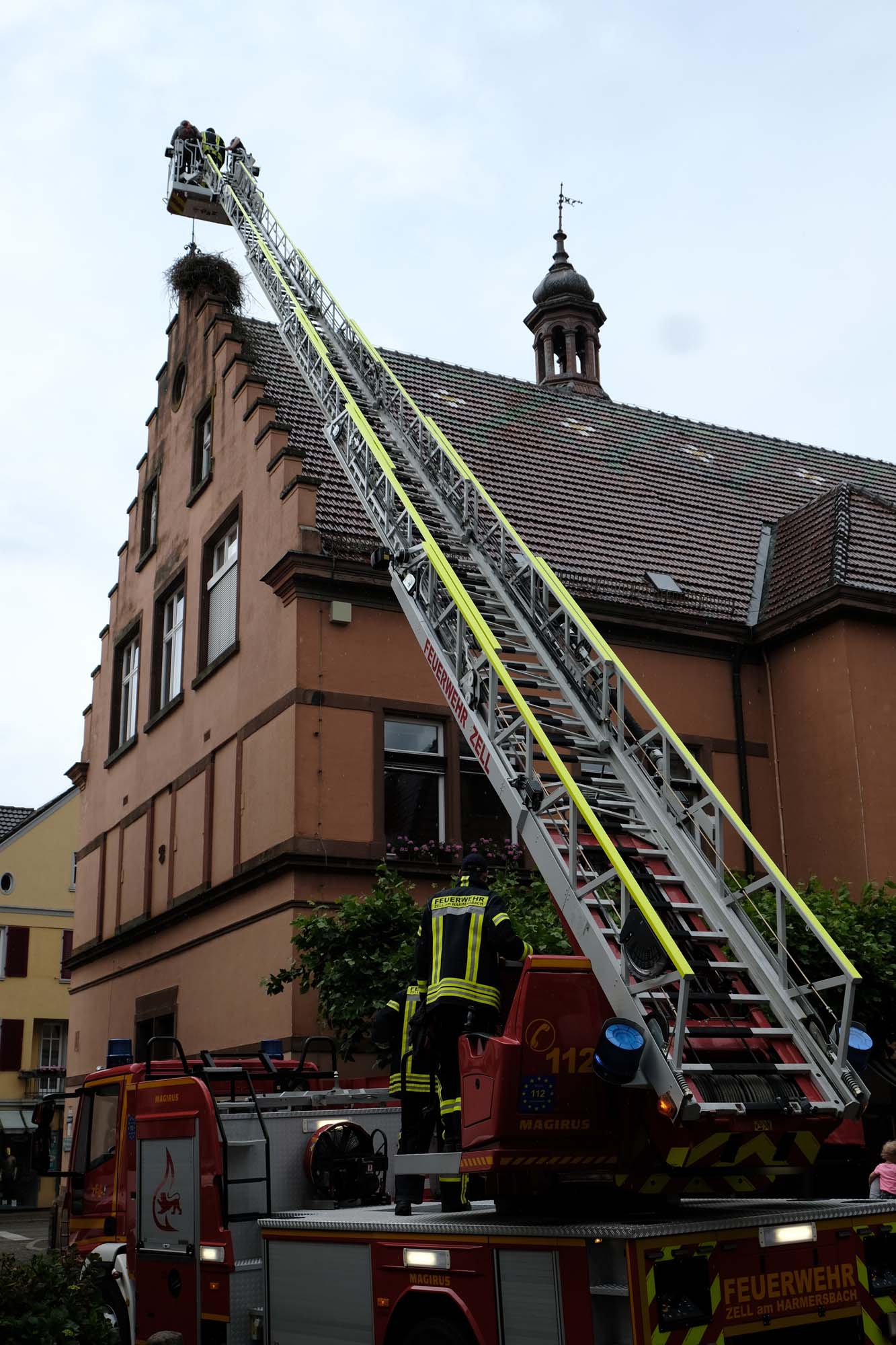 Zwischen fünf und sieben Wochen sind sie nun schon alt – die Jungstörche im Harmersbachtal. Im Fröschbacher Nest konnten am Freitag zwei, im Ortskern von Biberach drei beringt werden. In den Nestern in Zell erhielten zwei ihren Kinderstuben langsam entwachsende Vogelkinder ihren »Personalausweis« von Beringungsdebütantin Lisa Kopus