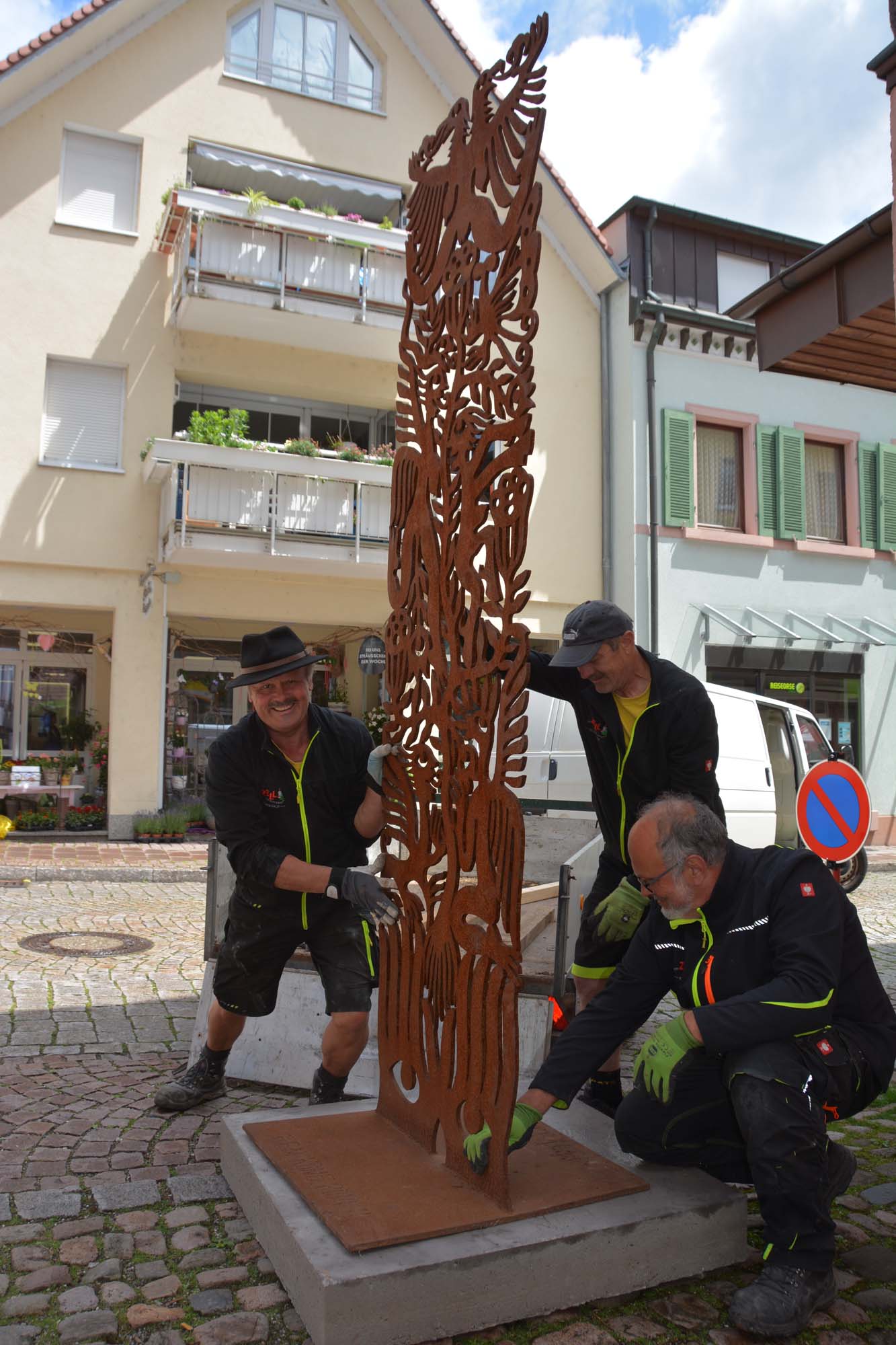 Indes hat sich in den vergangenen drei Wochen einiges getan in der Kirchstraße. Zwei »Straßen«-Cafés sind entstanden. Drei Kunstwerke der »Zeller Kunstwege« verschönern den Bereich. Am Mittwoch wurden die beiden noch fehlenden Arbeiten des chinesischen Künstlers Ren Rong von den Mitarbeitern des Betriebshofs aufgebaut. »Wir wollen die Geschäfte im Marketing unterstützen«, berichtet Daniel Lehmann aus dem Arbeitskreis. So soll unter anderem zeitnah ein Fotowettbewerb »Begegnungen in der Kirchstraße« initiiert werden. Insgesamt, wertet Daniel Lehmann, sei in der Kirchstraße ein schönes Innenstadtbild entstanden. Die Beschilderung könne noch verbessert werden, weist er darauf hin, dass es sich zunächst um eine Versuchsphase handelt.