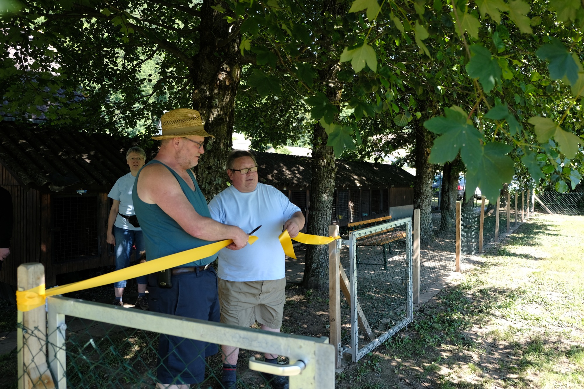 »Ich freue mich sehr, dass es heute soweit ist. Wir können den neuen Welpenauslauf offiziell eröffnen.« Mit diesen Worten vom 1. Vorsitzenden des Hundesportvereins Detlef Huth (rechts) begann das umfangreiche Programm des Tages. Die Welpengruppe, die von Martin Lehmann (links) geleitet wird, nutzt die Fläche schon seit ein paar Wochen.