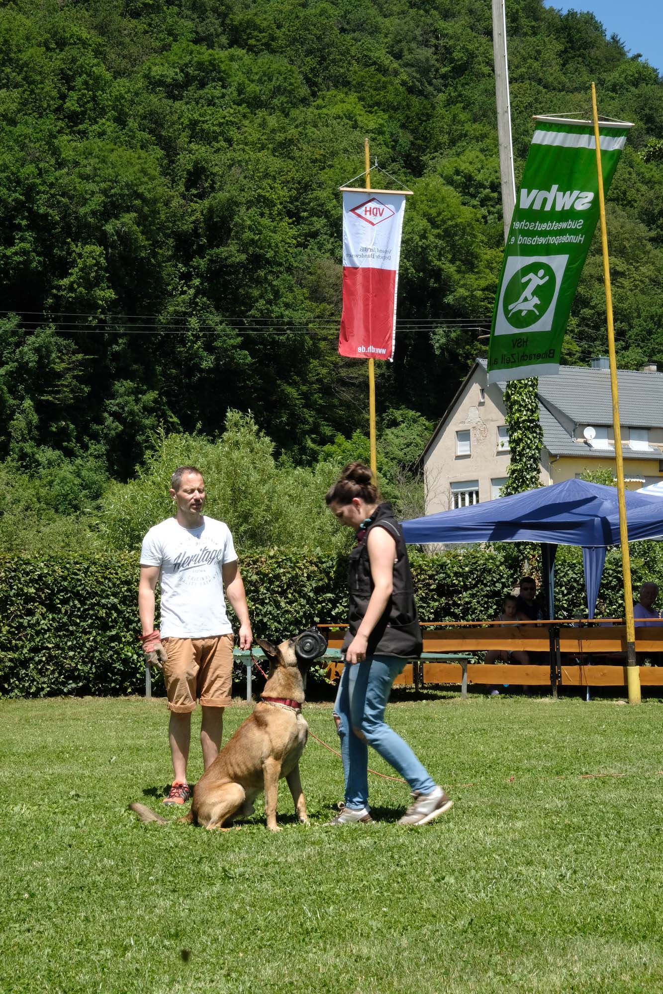Der Malinois-Rüde »Reese« ist noch jung und »Azubi« in Sachen VPG. Seine Hundeführerin Maylin zeigte zusammen mit Patrick den Trainingsaufbau zum Apportieren.
