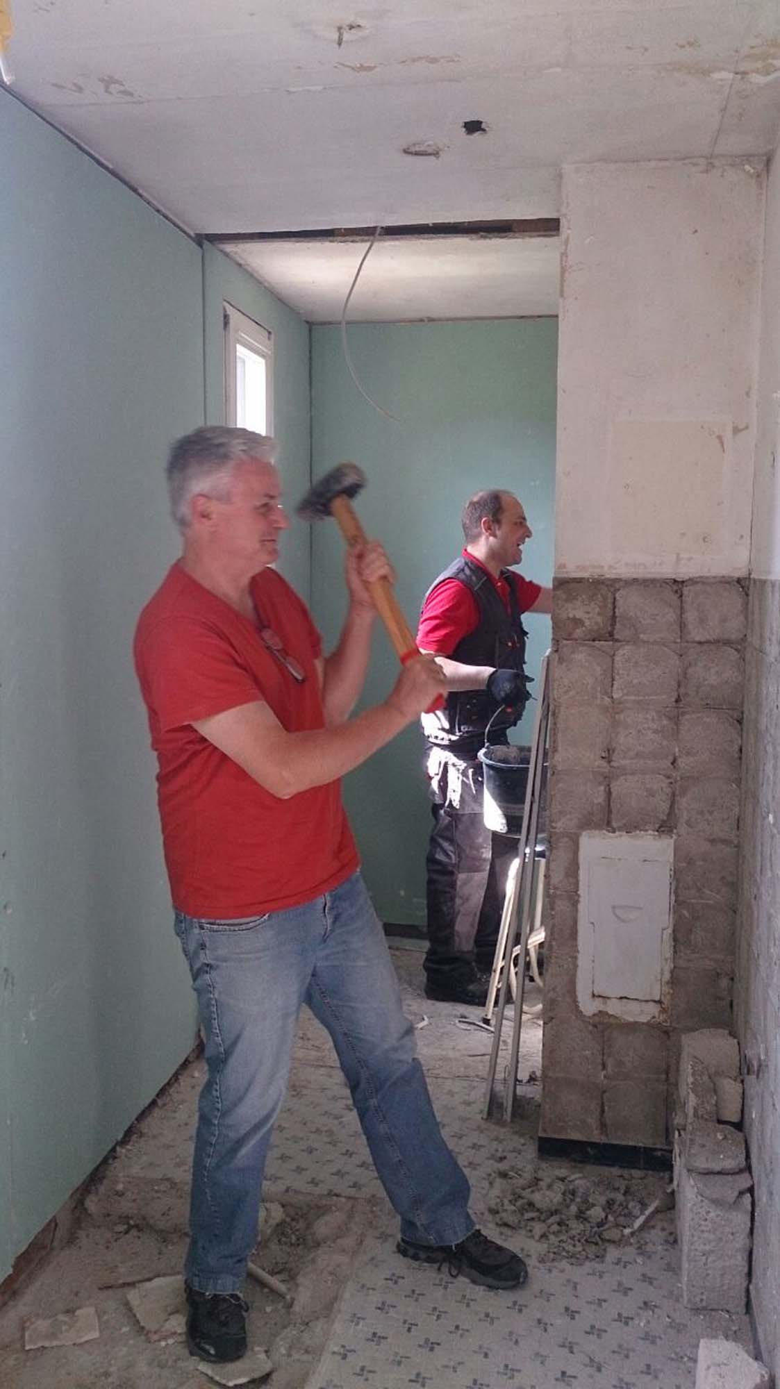 Gerade die Männer zeigten, dass Sie auch handwerklich begabt sind und im Trockenbau arbeiten können. Wer die dort geforderten Fähigkeiten nicht so gut beherrschte, konnte sich beim Putzen von Katzen- und Hundetransportboxen und anderen Arbeiten beweisen. Zwischendurch konnten die Hilfskräfte auch als professionelle Tiermasseure punkten, wobei das Streicheln und Spielen mit den vier Babykatzen nicht ganz selbstlos erfolgte.
