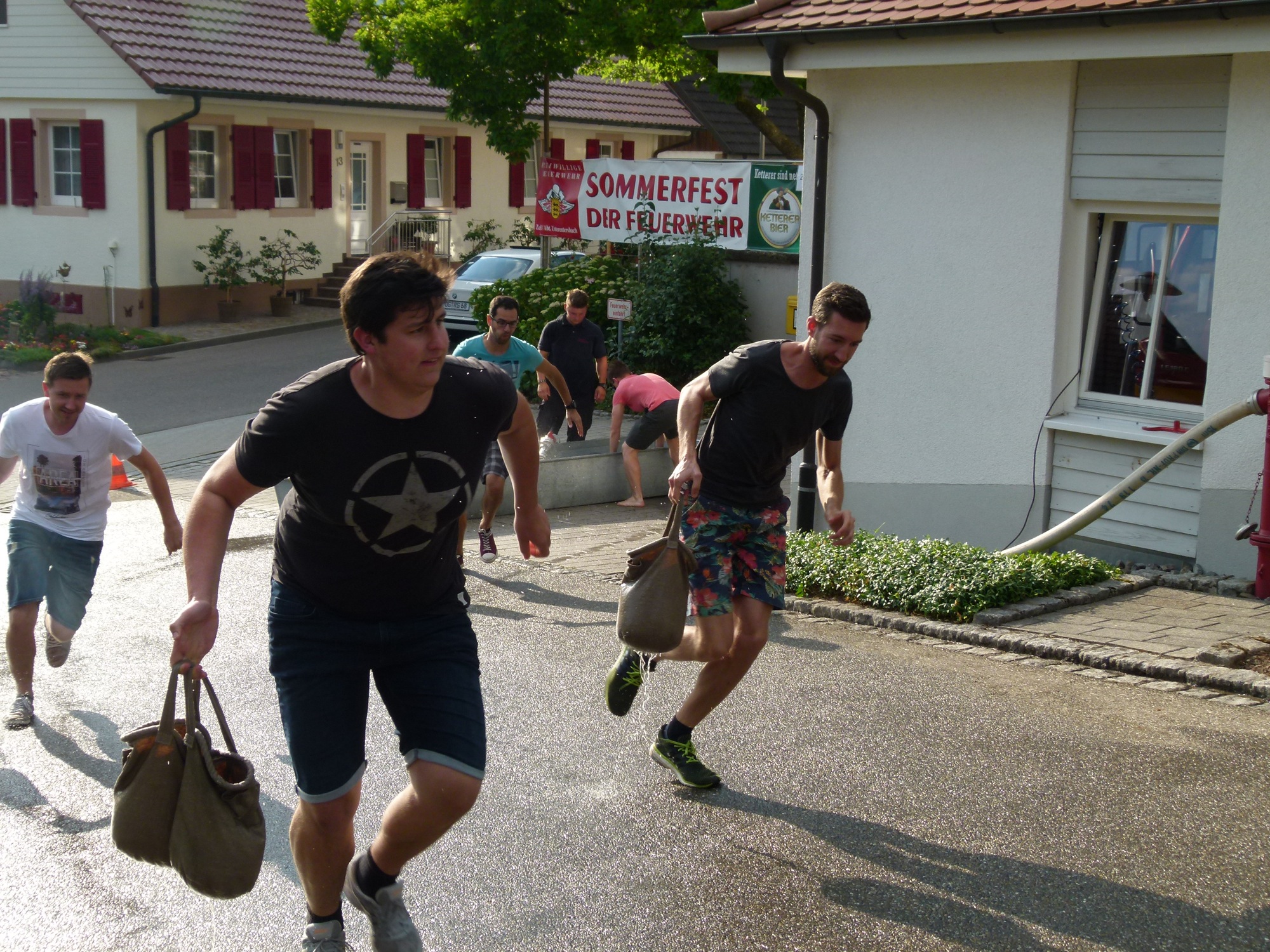 Insgesamt zehn Mannschaften waren bereit, sich dieser Herausforderung zu stellen. Vor dem Start zeigten die Kameraden der Abteilung Unterentersbach den Mannschaften in einem Probedurchgang, auf was bei dem Wettkampf zu achten ist und gaben kleine Tipps. Die Teilnehmer hatten sich unterschiedlich auf den Wettkampf vorbereitet. Während die einen sich in eine Ecke zurückzogen und die Taktik besprachen, haben andere sich an die Theke begeben und schon mal ein Bier auf den eventuellen Sieg getrunken, was sich jedoch zum Teil beim Wettkampf negativ auswirkte.