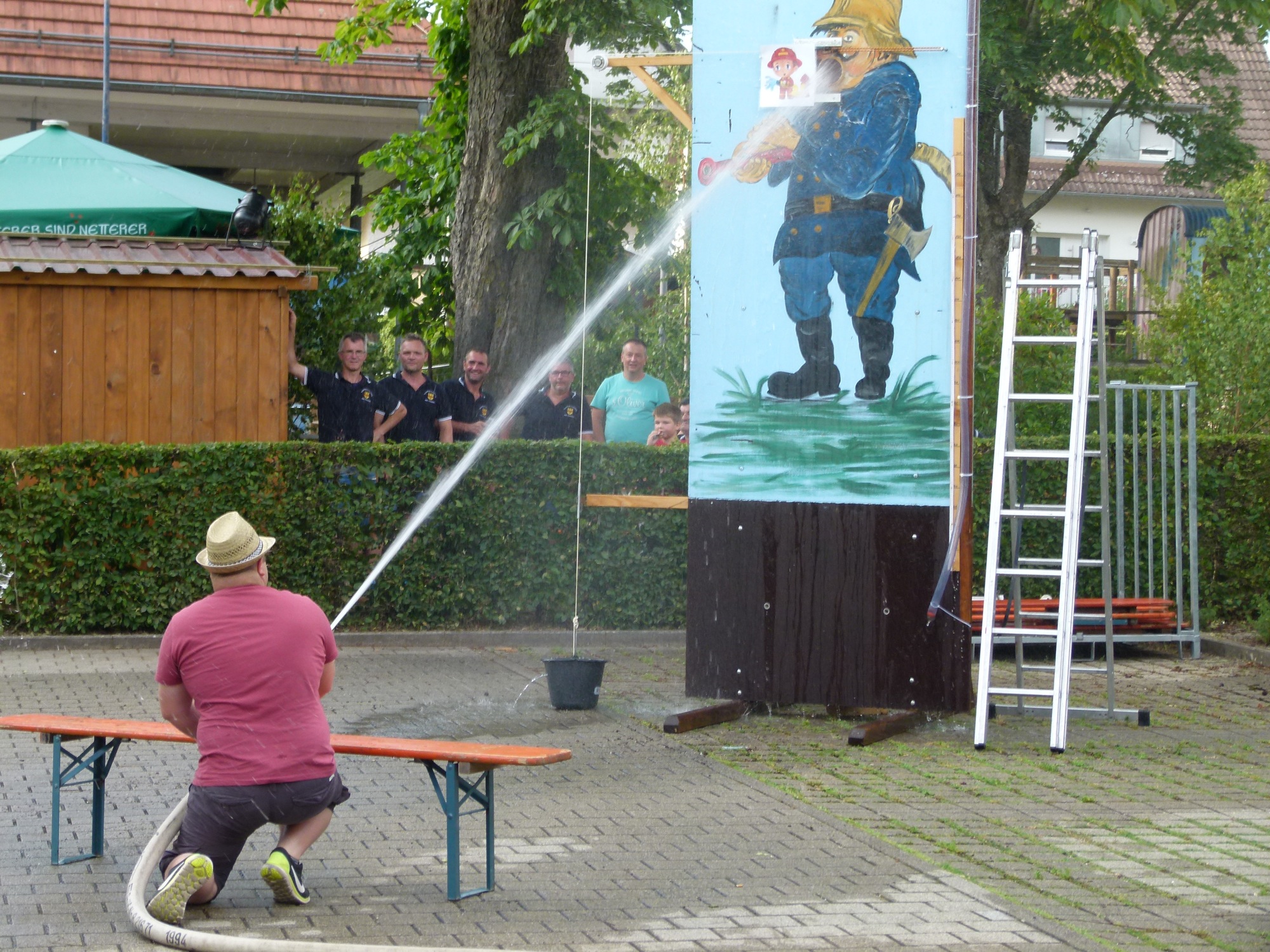 An mehreren Stationen präsentierte sich die Jugendfeuerwehr am Sonntagmittag – am Maltisch, beim Schlauchkegeln oder beim Spritzen. Als dann noch der Eiswagen vorfuhr, waren die Kinder nicht mehr zu halten. Aber auch Erwachsene nahmen den Eiswagen bei den hochsommerlichen Temperaturen gerne in Anspruch.