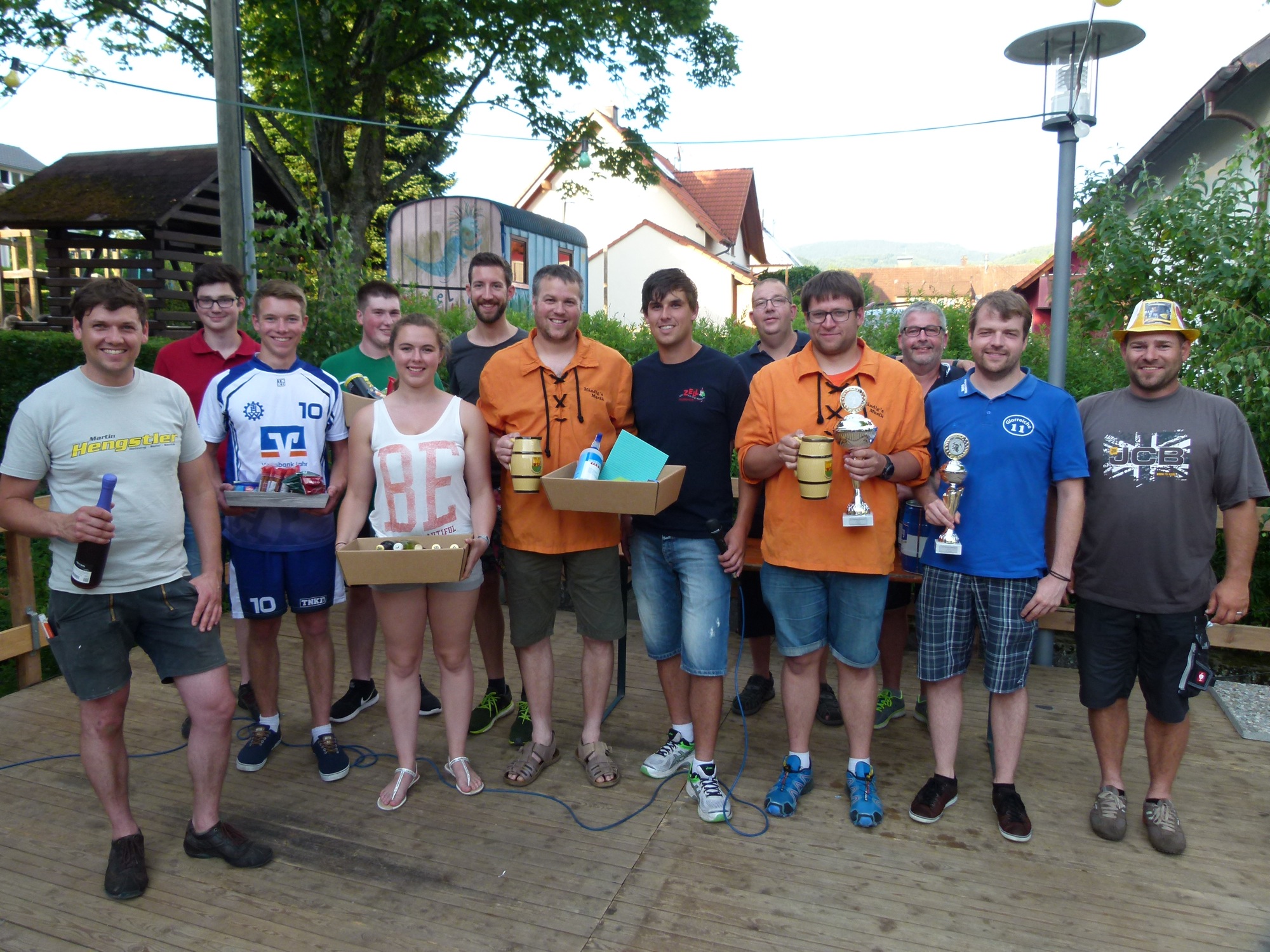 Nach einer Stunde mit spannenden Durchgängen, die von Daniel Erdrich interessant und unterhaltsam moderiert wurden, standen schließlich die glücklichen Sieger des Wettbewerbs fest. Die Siegerehrung übernahm wieder Felix Schwendemann, der dabei von seinem Stellvertreter Frank Erdrich unterstützt wurde. Zuvor bedankte er sich bei allen Sponsoren, die die Preise für den Wettbewerb spendeten. Es waren Cleanpark, Ketterer Transporte, Schnebel Computer Technik, Getränke Lehmann und Thomas Braun.