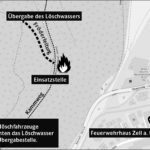»Das Verlegen von einer festen Förderleitung im Wald bei Bränden sollte in der Regel nicht gemacht werden. Die Lage könnte sich schnell ändern und dann bringe die Förderleitung nichts mehr, oder liegen im Feuer. Deshalb macht ein Pendelverkehr mehr Sinn«, erklärt Florian Lehmann die Brandbekämpfung. Die Feuerwehr Zell übernahm die Organisation des Pendelverkehrs zur Wasserförderung. Im wechselseitigen Einsatz waren die Tanklöschfahrzeuge Nordrach (2.400 Liter), Oberharmersbach (2.400 Liter), Hausach (5.000 Liter), Ohlsbach (3.800 Liter) und Durbach (3.500 Liter). In der Alarm- und Ausrückordnung der Feuerwehr Zell a. H. ist definiert, dass bei einem Waldbrand zwei Tanklöschfahrzeuge automatisch mit alarmiert werden. Er habe den Waldbrand bei Alarmierung gesehen und in Absprache mit Kreisbrandmeister Bernhard Frei sofort drei weitere Tanklöschfahrzeuge und die Führungsgruppe alarmiert, erklärt Florian Lehmann.