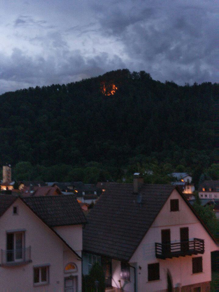 Er steht etwa 60 Meter unterhalb des Weges. Von diesem Punkt aus habe sich das Feuer nach oben ausgebreitet. Es ist den Hang hinaufgezogen. Oben am Kamm konnten die Einsatzkräfte es aufhalten. »Zum Glück ist dort noch ein größerer Weg, so dass wir in diesem Bereich einen Feuerübersprung verhindern konnten!«, berichtet Florian Lehmann, Kommandant der Feuerwehr Zell a. H.