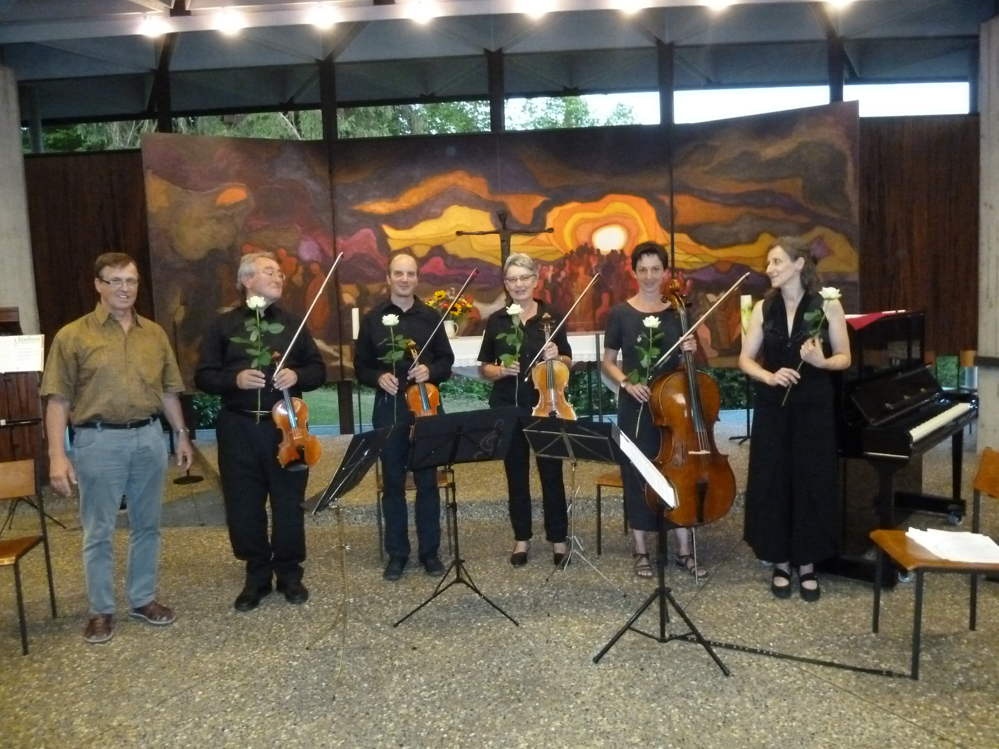 Das machte auch die »Sechs Walzer aus op. 39« von Johannes Brahms zu einem Hörgenuss: Weit entfernt von profaner Walzerseligkeit und doch mit zartem Schmelz, tänzerischer Leichtigkeit und dem für Brahms typischen volksliedhaften Ton. Das Kammermusikensemble verstand es, ein feinmaschiges Klangnetz zu weben –  in perfekter gemeinsamer Artikulation und Dynamik. Das lud ein zu stürmischem Beifall, mit dem sich die begeisterten Zuhörer in der evang. Kirche eine Zugabe erklatschten.
