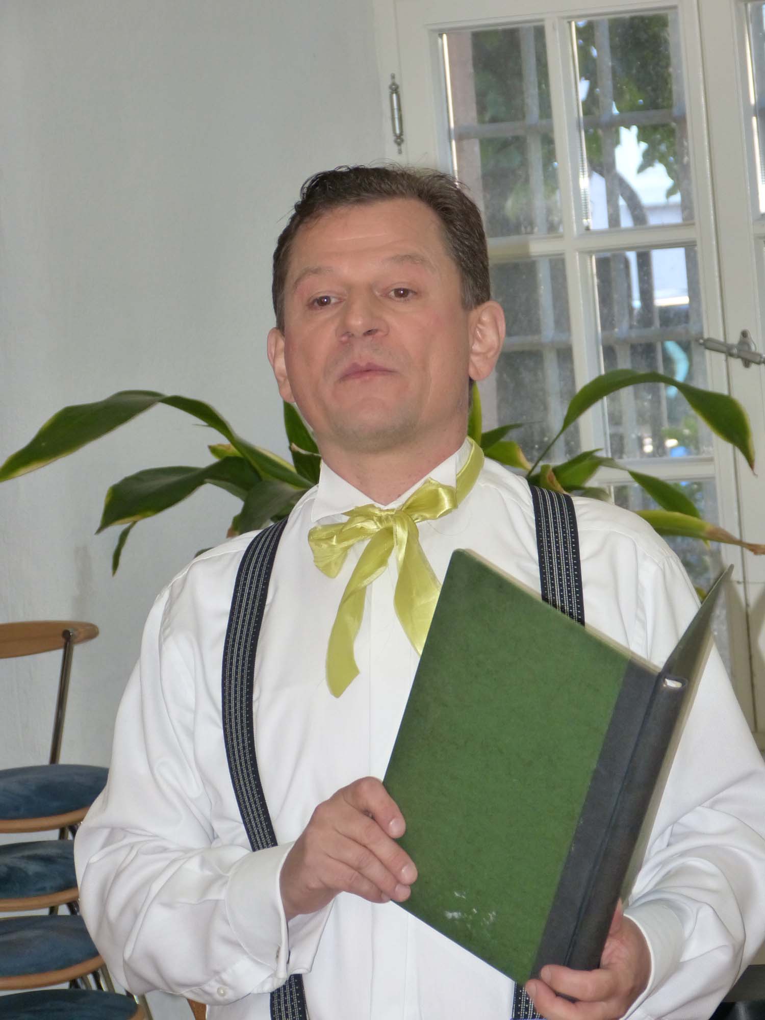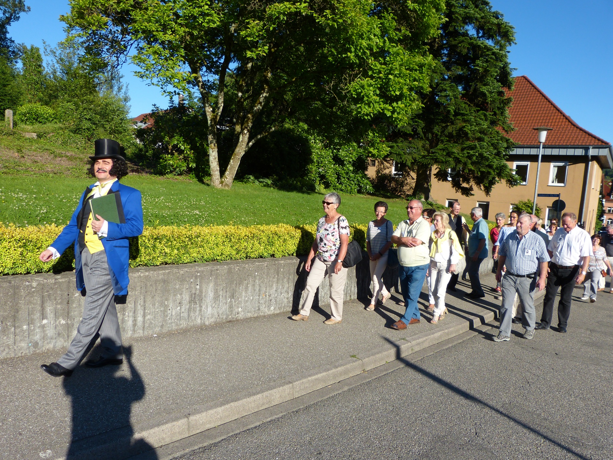 »Wir haben ein paar Wiederholungstäter heute Abend«, freute sich Lebenspartner Harald Haiss. Denn einige der Gäste hatten bereits die erste offizielle Veranstaltung besucht, die anlässlich des 200sten Geburtsjahres der historischen Figur Anfang Mai stattfand. Und zwar im Gasthaus Stöcken: jener ehemaligen Poststation, in welcher ein einfacher Töpfer- und Bauernsohn namens Franz Anton Schmider (1817–1893) als vorgeblich hoher Herr dem damaligen Posthalter einen Streich gespielt hatte, dessen weiterer Verlauf ihm den in die Annalen eingegangenen Titel »Graf Magga« einbringen sollte.