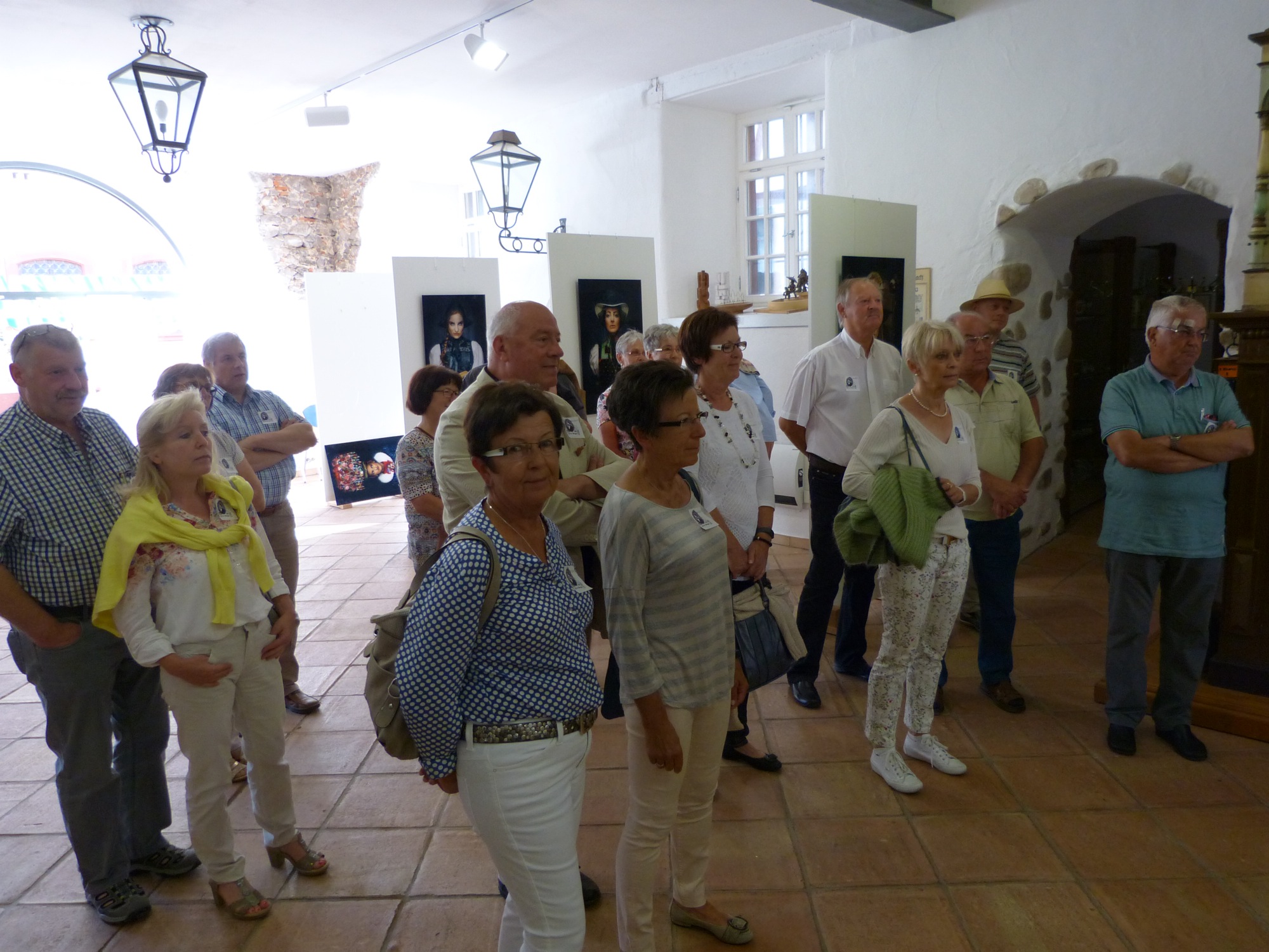 Fast dreißig Menschen hatten sich am vergangenen Donnerstag gespannt im Storchenturm-Museum versammelt und wurden mit einem Graf-Magga-Aufkleber »gekennzeichnet«. Von Roland Schopp höchstpersönlich, der noch er selbst war, wenngleich bereits geschminkt: Make-Up und Rouge modellierten sein Gesicht – unverkennbar, dass die Maskenbildnerei eine seiner Professionen ist.