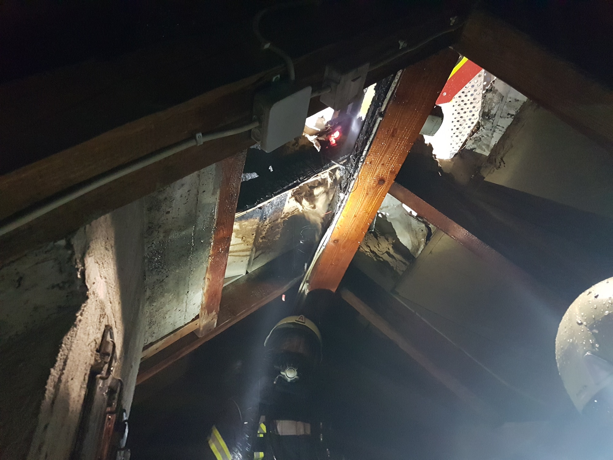 des Dachstuhles entzündet. Mittels eines Feuerlöschers konnten die Bewohner das Feuer nahezu löschen. Die Helfer der Feuerwehr Zell a. H. nahmen einen gezielten Innenangriff unter Atemschutz vor, um die Glutnester, insbesondere in der Isolierung, zu bekämpfen. Im weiteren Verlauf des Einsatzes wurden mit Unterstützung der Drehleitern die Dachhaut geöffnet und die noch in der Isolierung vorhandenen Glutnester abgetragen, abgelöscht und das Material nach draußen gebracht.