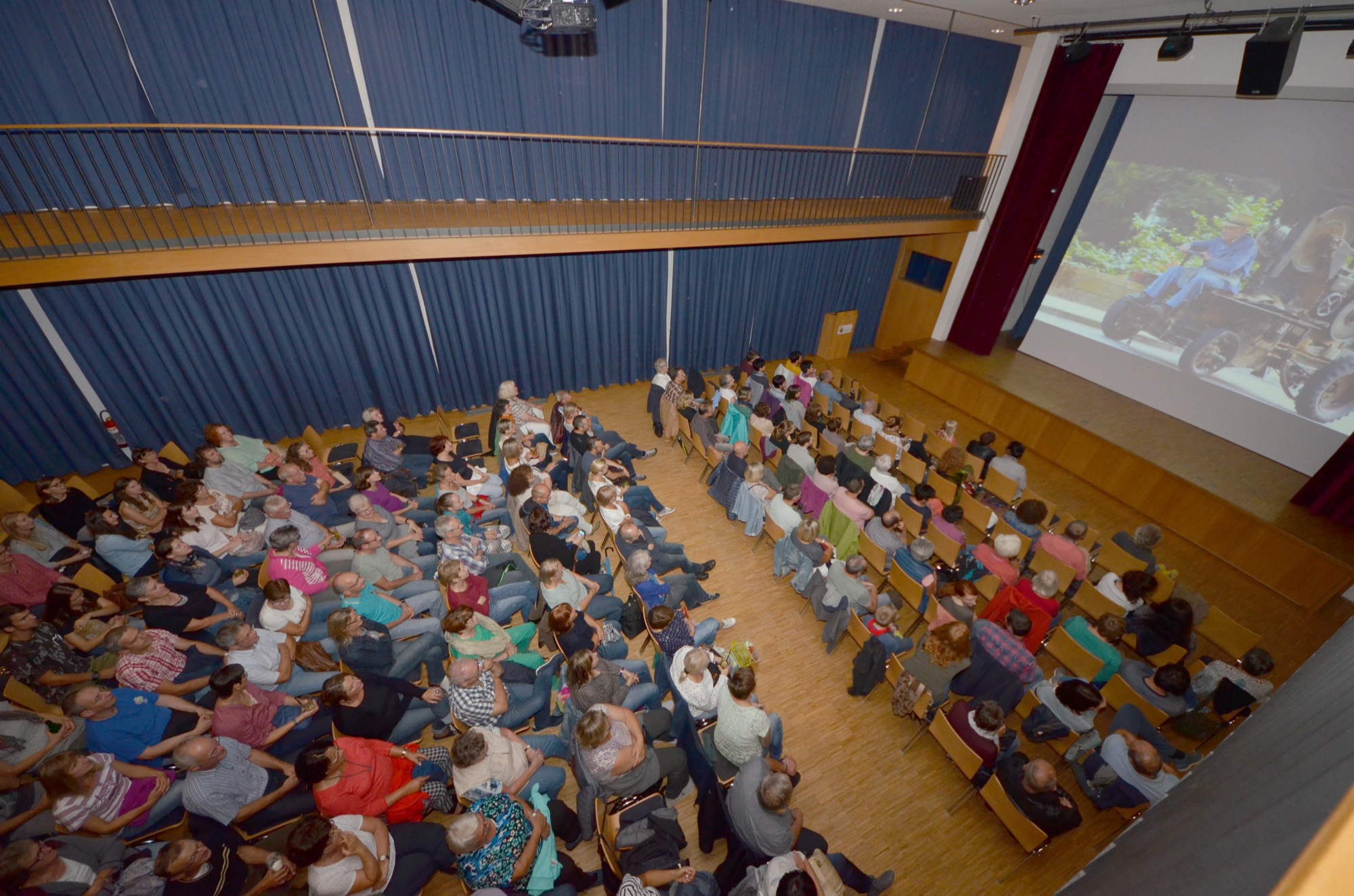 Bereits eine Stunde vor Filmbeginn war der Saal im Kulturzentrum gut gefüllt. Erwin Pfaff stellte weitere Stühle auf, die zur Vorstellung fast alle gefüllt waren. Die »Minipäpers« der Stadtkapelle, servierten am Kino-Kiosk Sommerschorle, Hugo, Bier und Würste. Süßer Duft frischen Popkorns lag in der Luft um die Popkorn-Maschine.