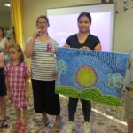 Die Künstlerin Heike Kalt widmet sich der Kunst der australischen Ureinwohner, dem Dot Painting. Hier werden Farben mit Stöckchen oder Wattestäben auf die Leinwand gebracht. Eine Schülerin der Gruppe sagte dazu: «Das ist viel Aufwand und man braucht viel Geduld«. Aber die farbenfrohen Bilder mit den gemusterten Motiven sind dafür auch sehr schön geworden.