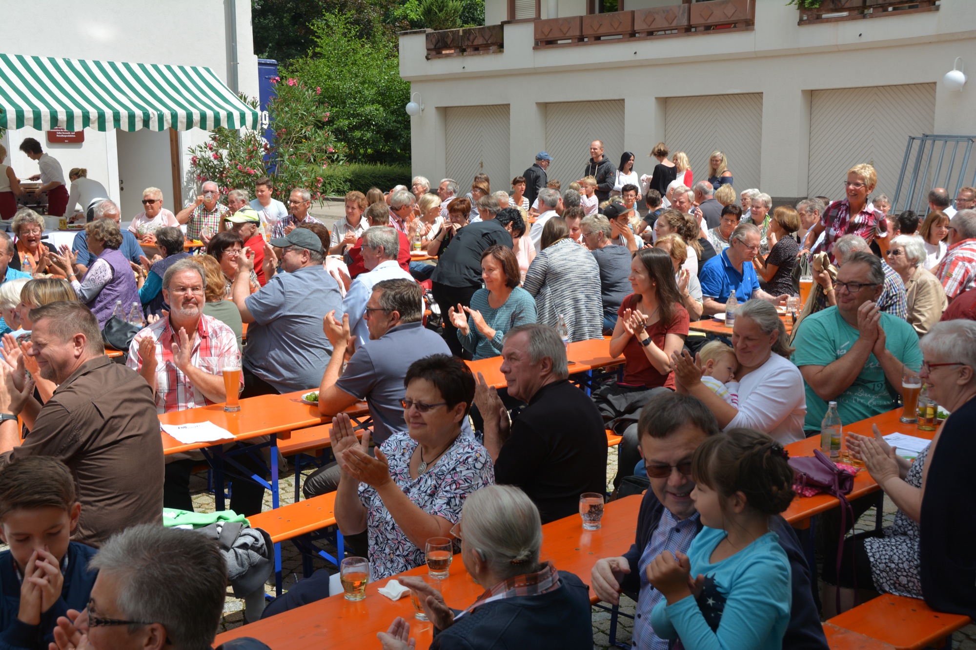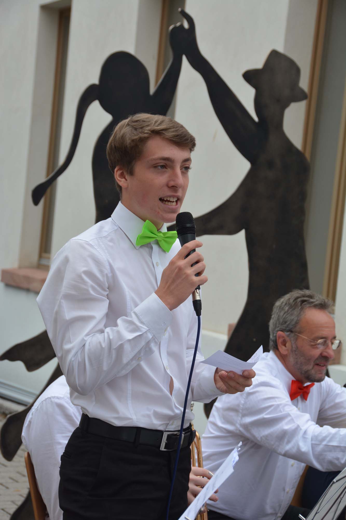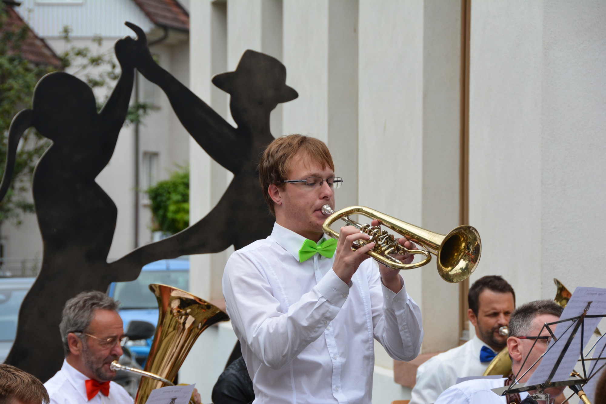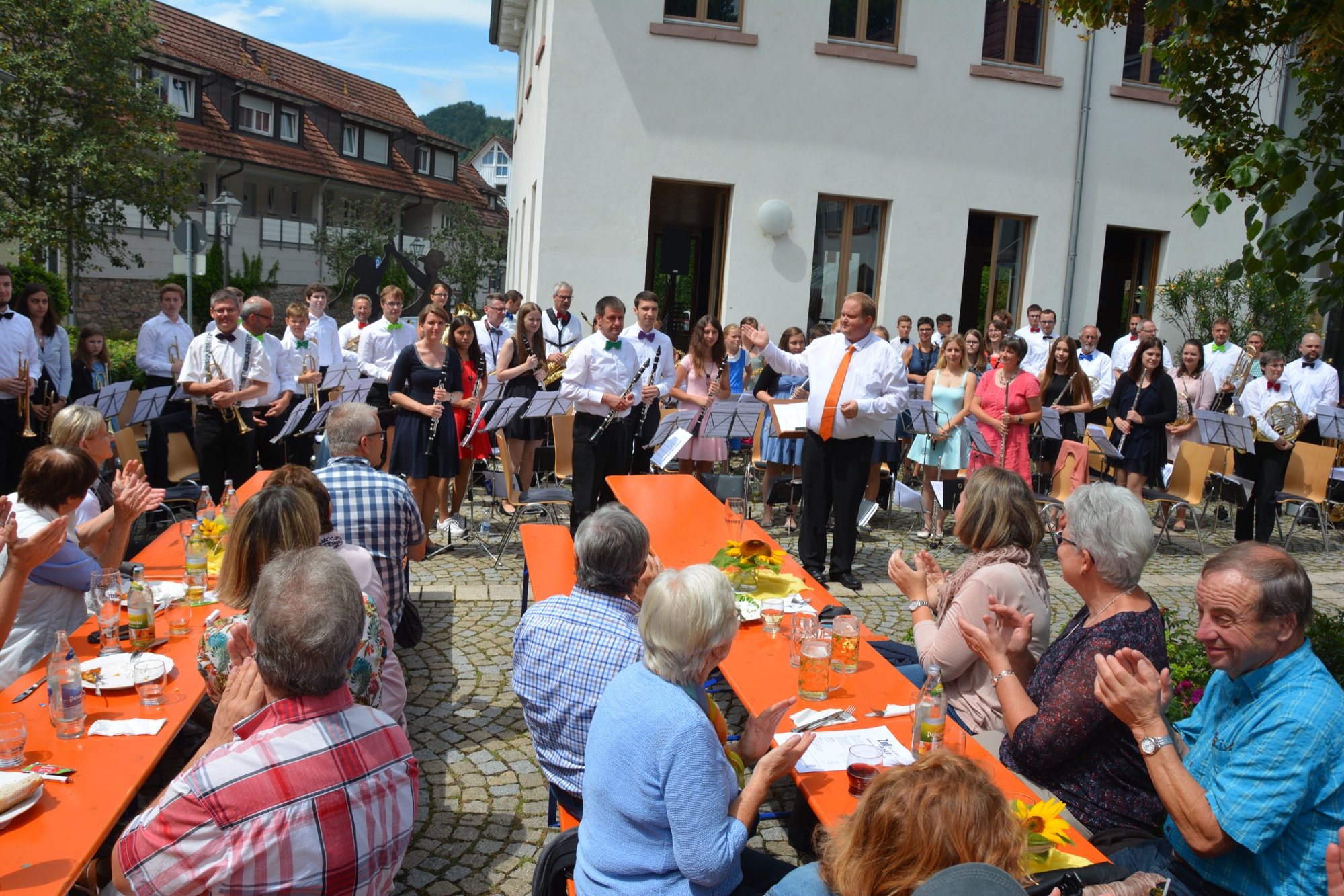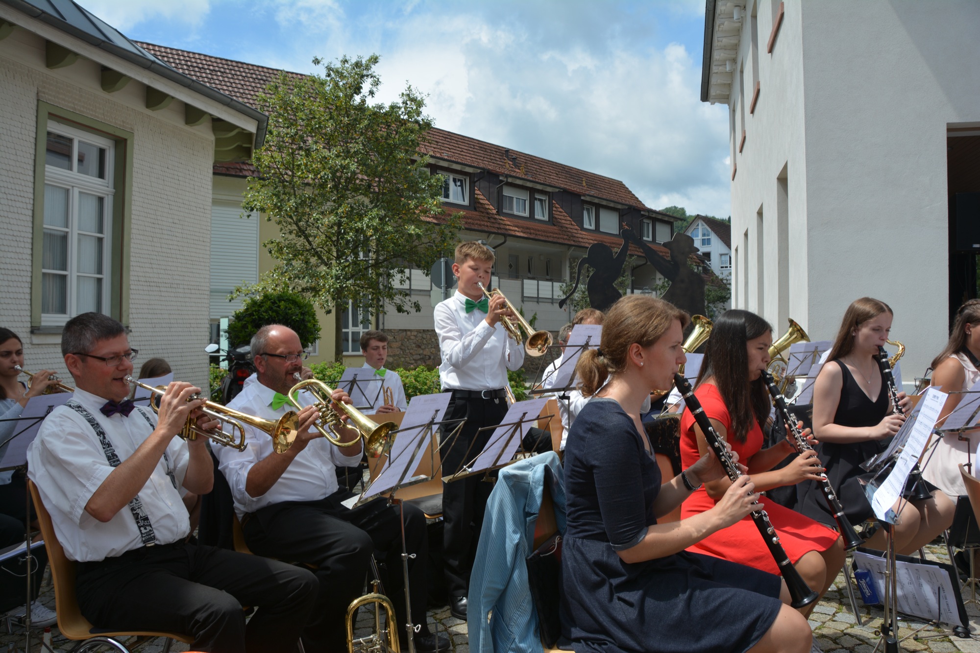 Mit der freudigen Ouvertüre »Jump and Joy« hießen Dirigent und Orchester die Besucher willkommen, um sie danach mit der »Herb Alpert Selection Nr. 1« zu einem flotten Foxtrott aufzufordern. Beim weltberühmten Volkslied »Funiculi Funicula« konnte man vor dem geistigen Auge die Tanzpaare über den Platz wirbeln sehen. Danach bot die Stadtkapelle mit dem Stück »Caribbean Clipper«, in dem verschiedene Tänze vom Rumba bis zum Salsa vereint sind, echtes Sommer-Feeling. Mit dem rassigen Quick-Step »I don’t mean a thing« beschloss die Stadtkapelle den ersten Konzertteil.