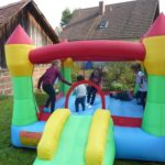 Die gesamte Kinderschar hatte viel Spaß dabei, sich in der Hüpfburg im Garten auszutoben.