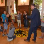 Weiter geht es am »Bürgermeister-Nachmittag« in die Alte Kanzlei und das ganze Rathaus wird erkundet, sogar der Speicher im Dachgeschoss. Im Bürgerbüro waren vier Kinder schon einmal zuvor, stellt sich heraus. Das Büro des Bürgermeisters wird genau unter die Lupe genommen, ebenso das Goldene Buch der Stadt, in der sich schon so mancher prominente Gast verewigt hat. Selbst das »Schmuckkästchen« wird geöffnet, damit der Bürgermeister den Kids seine Amtskette aus echtem Silber zeigen kann. Die Kinder kommen zudem in den herrlichen Genuss des Ausblicks vom Storchenturm. Der »Zamba« spielt. Als Andenken an den interessanten Nachmittag versorgt der Bürgermeister seinen Besuch noch mit Frisbee-Scheibe, Städtle-Aufkleber, Zeller Schoki und einem Holzanhänger mit dem Siegeldruck, bevor es zum Abschluss ins Eiscafé Venezia geht. Bürgermeister wie Ferienkinder ziehen ein positives Fazit des Tages. Bürgermeister Pfundstein ist sich jetzt schon sicher: »Auf ein nächstes Mal in den kommenden Sommerferien!«