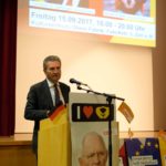 EU-Kommissar Günther Oettinger, seit 2010 Mitglied der Europäischen Kommission, warf einen Blick zurück in die Vergangenheit Europas und beschrieb die Gegenwart. Europa erlebe erst blühende Jahre, seit aus Nachbarn, die sich in der Geschichte häufig feindlich gegenübergestanden waren, Freunde geworden seien. Europa sei stabil und ein Friedenskontinent. Er mahnte an, für den Erhalt dieser Werteordnung zu kämpfen. Die Vollendung des Europäischen Binnenmarkts sei bedeutsam, für den gesamten Kontinent und für die einzelnen Nationen an sich. Er fand immer wieder Beispiele, wie sich das Wesen der EU im Leben eines jeden Einzelnen manifestiert: in der Wirtschaft, beim Reisen, beim täglichen Leben entlang der Rheinschiene und in vielen anderen Dingen mehr. Die Mitgliedschaft in der Europäische Union sei eine attraktive Perspektive für viele andere Länder. Die Anwärter zum EU-Beitritt, etwa aus den Nachfolgestaaten Jugoslawiens, hielten sich nichtzuletzt deshalb an die Vorgaben, solange glaubhafte Beitrittsperspektiven bestünden.
