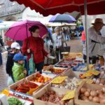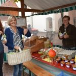 »Der Wochenmarkt hat sich gut entwickelt«, bestätigt Marktfrau Elisabeth Börsig. Seit 32 Jahren bietet die Familie Börsig jeden Samstag ihre Hofprodukte auf dem Zeller Markt an und vertreibt auch Produkte von benachbarten Höfen. Landwirtschaftliche Erzeugnisse gehören traditionell zum Hauptangebot auf dem Städtlemarkt. Aber auch viele andere Produkte locken regelmäßig die Kunden auf den Kanzleiplatz. Beim Jubiläums-Städtlemarkt am Samstag war das Angebot noch etwas reichhaltiger als sonst. Als Dankeschön für ihre Treue zum Markt übergaben Maria Hättich und Alisa Dörfer vom Zeller Stadtmarketing den Marktbeschickern ein »Storchenturm«-Tröpfle.
