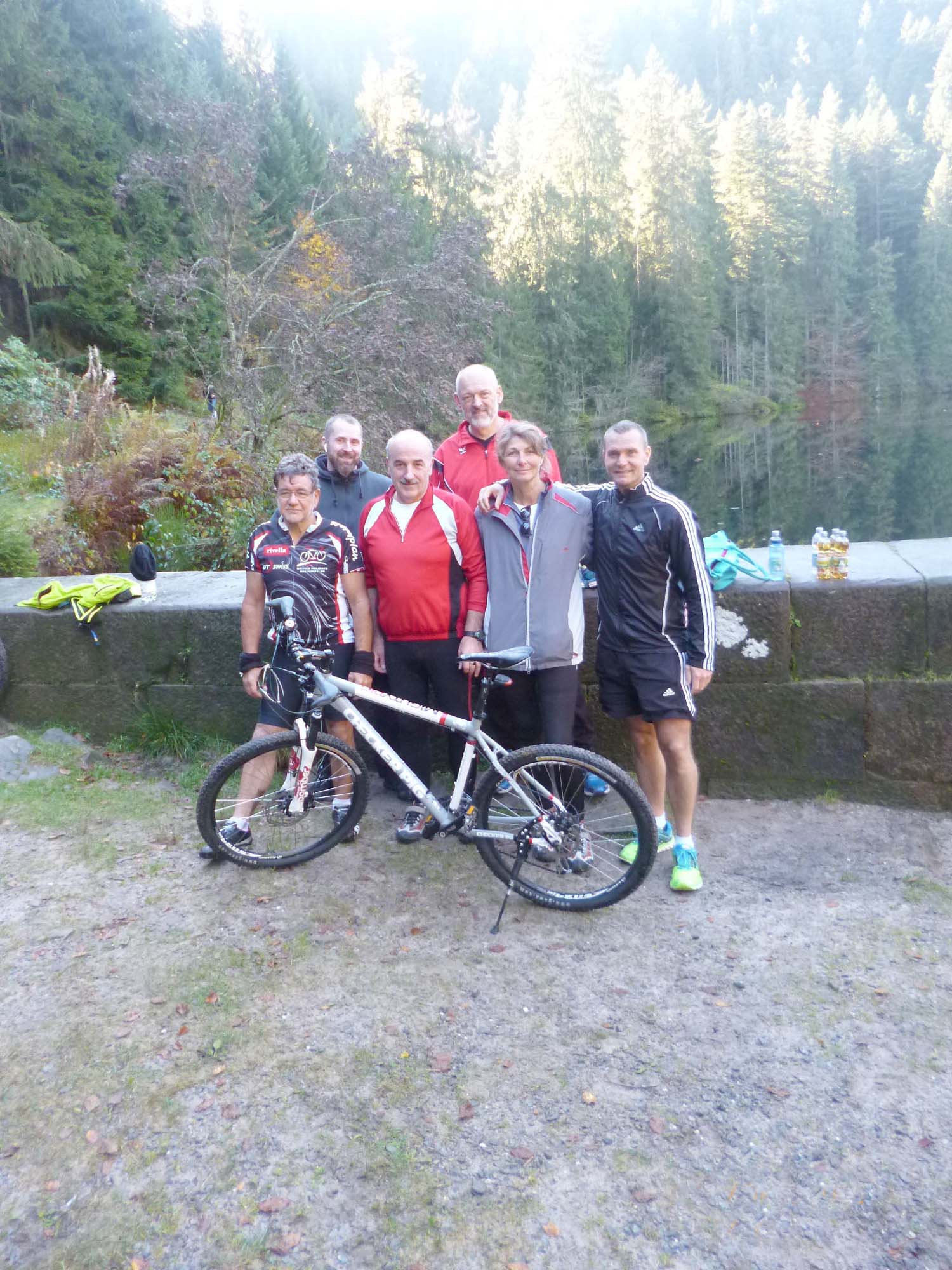 Auf dem Freiersberg schrumpfte der Vorsprung von Christian auf sechs Minuten zusammen. Das Rennen versprach noch richtig spannend zu werden. In einem heißen Endkampf erwartete die Radfahrer und Läufer das Zielkomitee. Um 13 Uhr, 3 Minuten und 19 Sekunden kam Christian mit Fridolin und Matthias am Glaswaldsee an. Von Gerhard, Petra und Bernhard war noch nichts zu hören. Nach einigen Minuten wurden die Zuschauer schon unruhig – war etwas passiert, hatte Gerhard nochmals eine Auszeit zum Plaudern genommen und das Rennen vergessen?