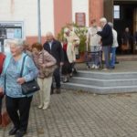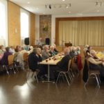Der kurze Weg ins Pfarrheim ähnelte einer Prozession ohne Kreuz und Fahnen und war der Übergang zum bevorstehenden Herbstfest. Im herbstlich geschmückten Saal begrüßte Manfred Neumayer vom Altenratsteam die Seniorinnen und Senioren, sowie die Bewohner vom »St. Gallusheim« und dem Betreuten Wohnen. Tassen, Gläser und Teller blieben neben den mit Herbstblumen und Äpfeln geschmückten Tischen nicht lange leer, und die Anwesenden konnten sich bei Kaffee, Hefezopf, Brezeln und vor allem neuem Wein und Zwiebelkuchen stärken und unterhalten.