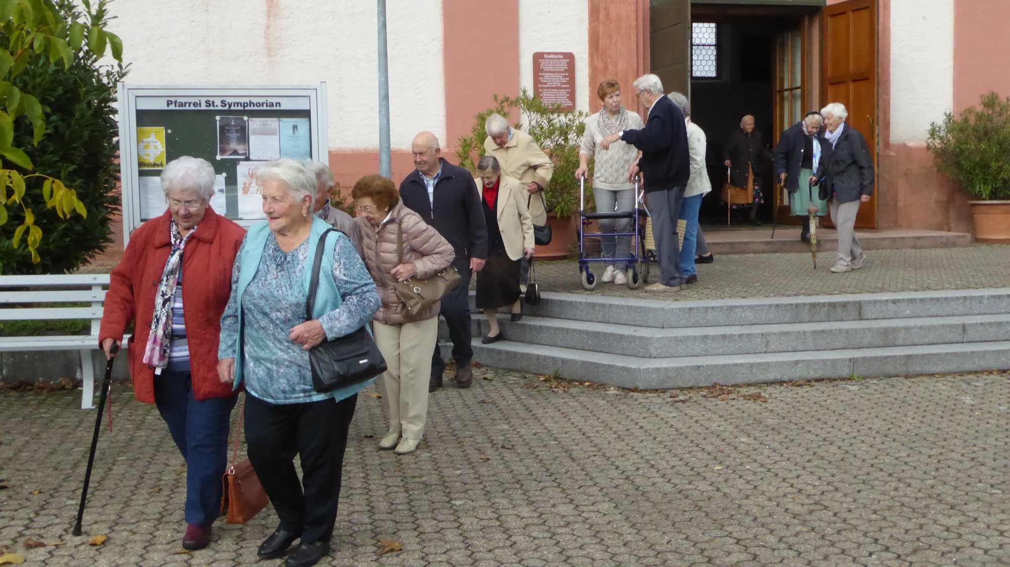 Zum Altennachmittag des Altenwerks Zell im Oktober versammelten sich die Seniorinnen und Senioren zunächst in der Pfarrkirche »St. Symphorian« mit Bruder Pirmin und dem Altenratsteam zu einer kurzen Rosenkranzandacht.