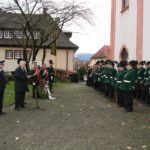 In der anschließenden Feierstunde am Kriegerdenkmal auf der Ostseite der Kirche hielt Bürgermeister Hannes Grafmüller die Rede zum Gedenken an die Opfer der Kriege. Dabei erinnerte er nicht nur an die Soldaten und Zivilisten, die in den beiden Weltkriegen ihr Leben lassen mussten. Er gedachte auch derer, die im Widerstand gegen die Gewaltherrschaft hingerichtet wurden. Ferner erinnerte er an die zahlreichen Opfer von islamistischen Terroranschlägen in jüngerer Zeit. Ein ehrendes Gedenken würden auch die Bundeswehrsoldaten verdienen, die in Kriegs- und Krisengebieten Schlimmeres zu verhindern suchen.