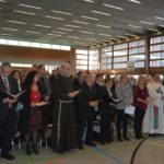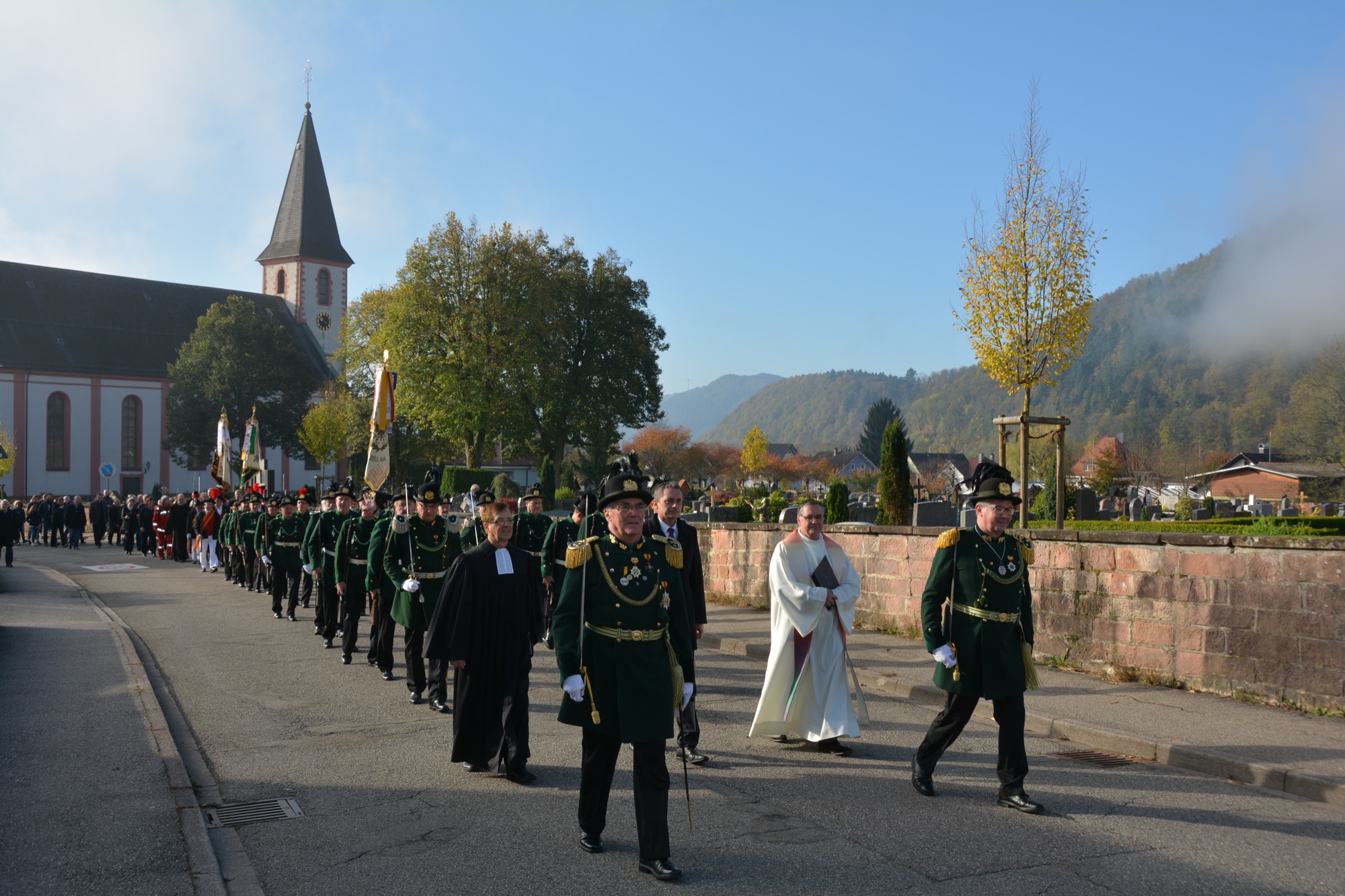 Am Ende des Gottesdienstes wünschte Bürgermeister Günter Pfundstein in einem Grußwort den beiden Konfessionen weiterhin ein gutes Miteinander. Danach paradierte die Zeller Bürgerwehr auf dem Vorplatz, begleitet von Fahnenabordnungen der Bürgerwehren von Unter- und Oberharmersbach, und feuerte eine Salve zu Ehren der Kirchenvertreter und Gottesdienstbesucher ab. Daran schloss sich in der Halle ein zwangloser Stehempfang an, der von vielen Besuchern für die Begegnung und das Gespräch genutzt wurde.
