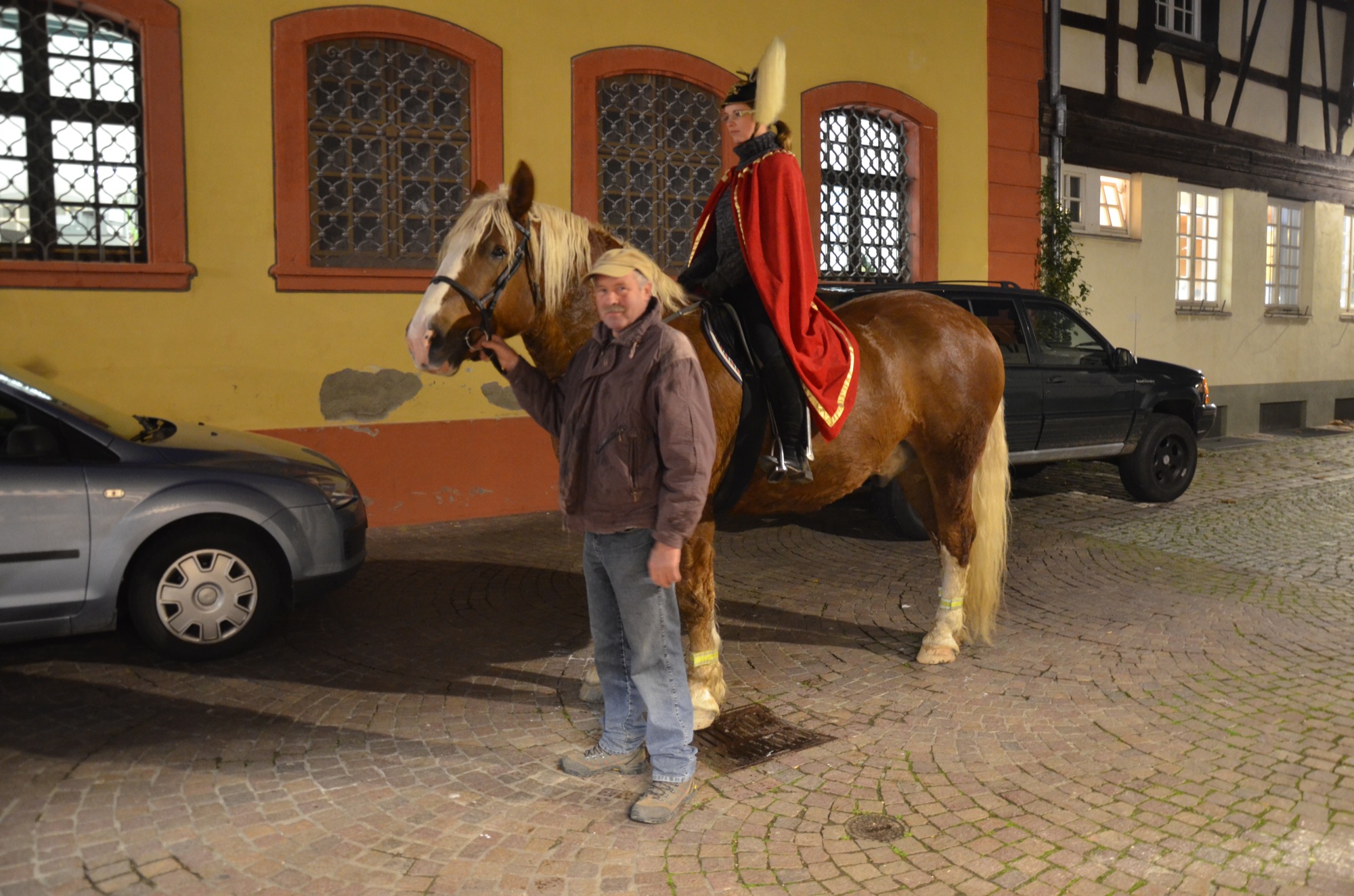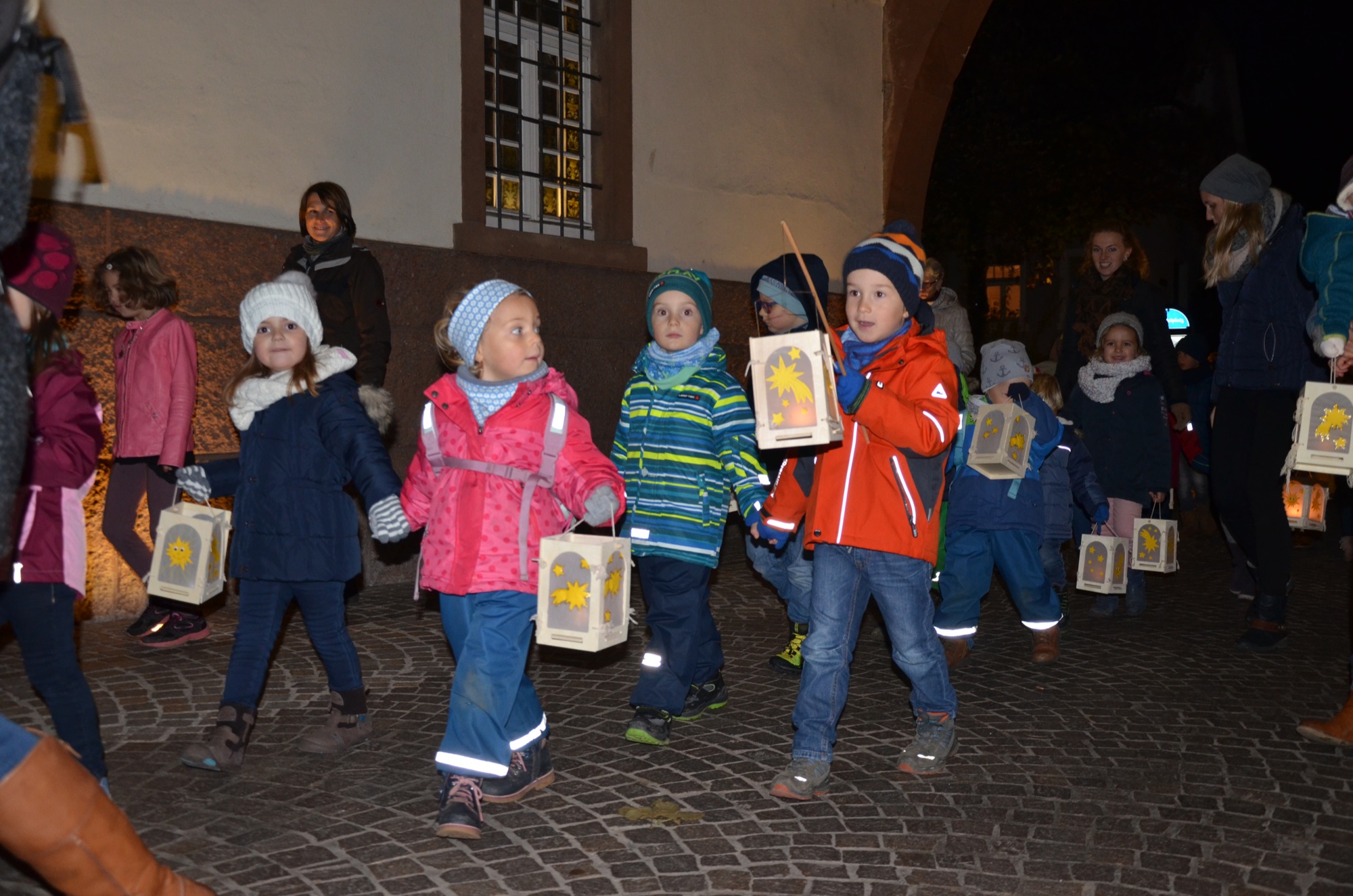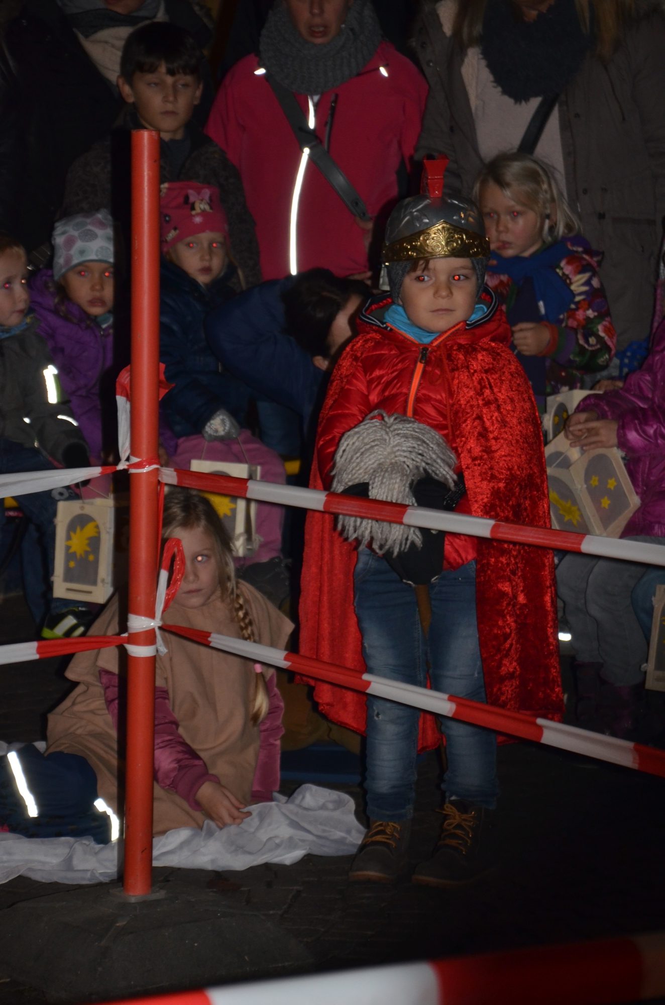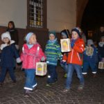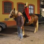 Am späten Nachmittag zogen viele kleine Laternenträger von dort im größeren Bogen zum Kanzleiplatz. Den Zug führte Christina Pfundstein als Heilige Martina auf Wallach Dario an. Der Vater von Christina Pfundstein, Hubert Hansmann, begleitete Tochter und Ross.