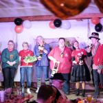Nach dem offiziellen Teil startete das Jubiläumsprogramm mit »Emotions hoch 8« – einer satirischen Sprechcanon-Nummer, die die Führungsriege der anderen Fasendsvereinigungen auf die Schippe nahm. Wieder mit dabei waren auch Chantal und ihre Petticoats. Mit deftigen Sprüchen und ebensolchen Liedern nahmen sie kein Blatt vor den Mund. Sie plauderten und sangen anzüglich über den nun wieder »freien Verkehr in der Kirchstraße«, stellten fest, dass das mit der Behelfs-Bushaltestelle an der Schule gar nicht so schlimm sei, weil die Jugend heute sowieso nur aufs Handy starrt und waren sich sicher, dass man aufgrund der Schilderdichte Zell am Harmersbach getrost bald in Zell am Schilderbach umbenennen könnte. Das Feuerwerksverbot in der Altstadt nahmen sie ebenfalls aufs Korn und sie fanden, dass zur Eindämmung des Vandalismus durchaus die Bürgerwehr zur Hilfe gerufen werden könnte.