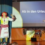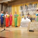 »Ab in den Urlaub« machten sich die Zeller Narros. Die Karten-Narros landeten im Casino von Las Vegas. Saufen bis zum Umfallen wollten die Bändele-Narros auf Malle, die Welschkorn-Narros verirrten sich nach Ischgl und die Schneckehisli-Narros flogen – ganz langsam – nach Thailand in den Wellnesstempel. Da kam Esthers musikalische Rückrufaktion gerade zum richtigen Zeitpunkt. Mit ihrem Hit-Mix erinnerte sie an die Traditionen im Narrenstädtle Zell. »Bleiben Sie entspannt«, riet die Thai-Yoga-Lehrerin ihren drei Schülern, die ihre Glieder zu Frosch, Schlange und Flugzeug verbogen. Der »Sturm« sorgt auch im Saal für stürmischen Applaus.