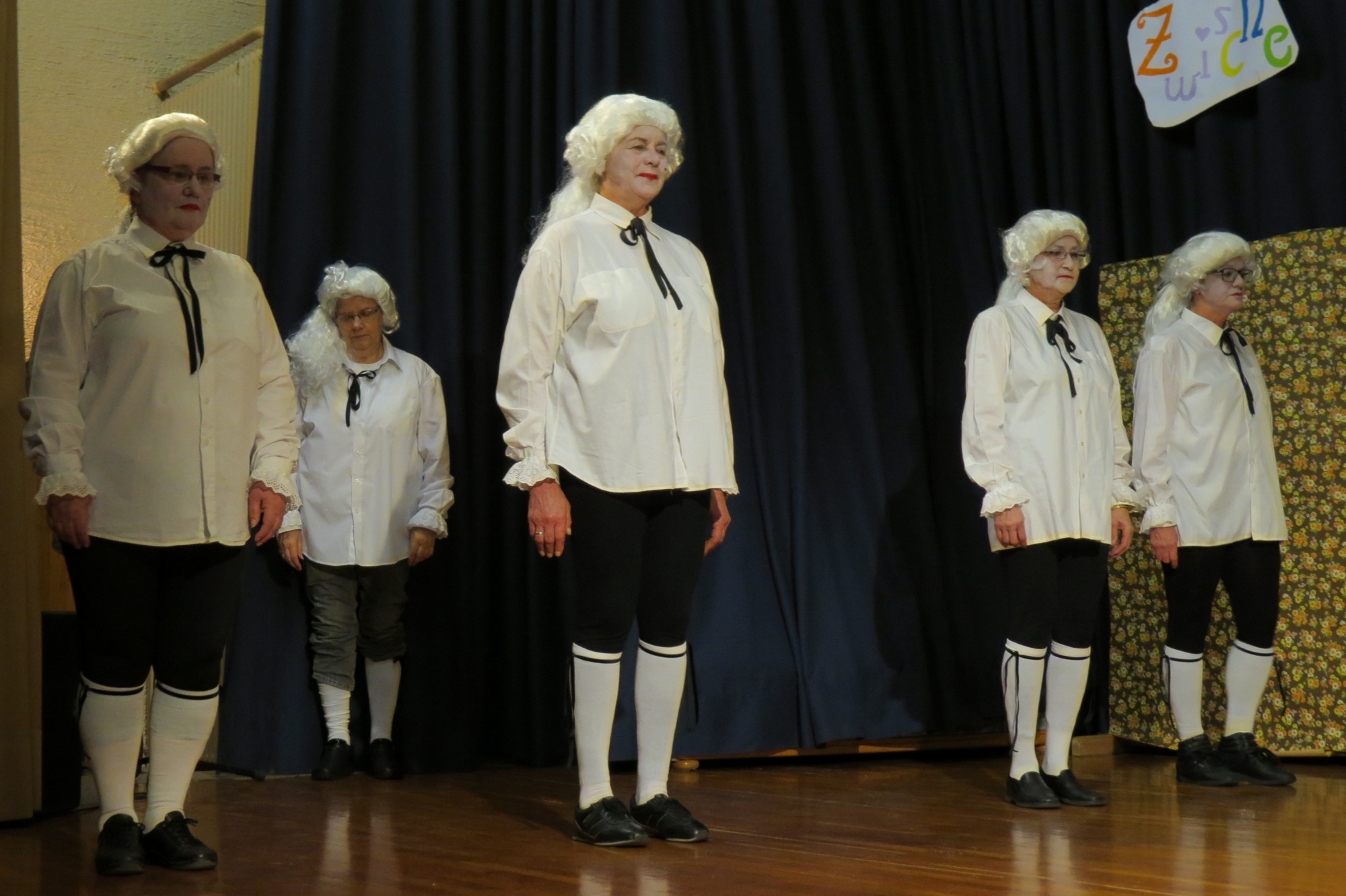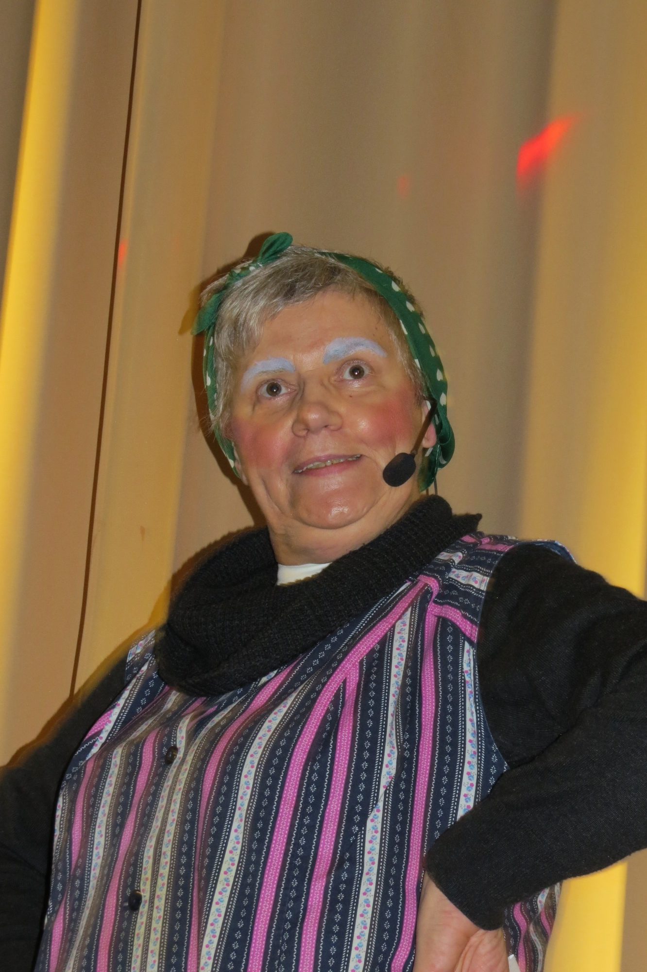 Der Hoftanz des Frauentreffs entführte das Publikum in das Mittelalter. Doch Tänzerin Melitta versteht die Kleiderordnung nicht: Früher haben sich die Leute doch nicht gewaschen, sondern nur gepudert, also macht sie das jetzt genauso.