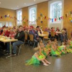 Die Kindertanzgruppen von Susi Dangl gehören zum festen Programm der Seniorenfasend. Zuerst hatten die Feen ihren Auftritt. 11 Mädchen von 5 bis 6 Jahren zeigten ihren anmutigen Tanz mit ihren leuchtend grünen Feenkostümen wirklich süß anzusehen. Danach kamen die spanischen Senoritas dran; die etwas größeren Kinder konnten sich geschickt zur Musik bewegen und bildeten am Ende eine schöne Abschlusspose. Beide Gruppen erhielten viel Beifall und zeigten ihren Tanz gern ein zweites Mal. Vor der Bühne intonierten die Musiker dann das bekannte »Fliegerlied«, das die Kinder mit ihren Bewegungen begleiteten.