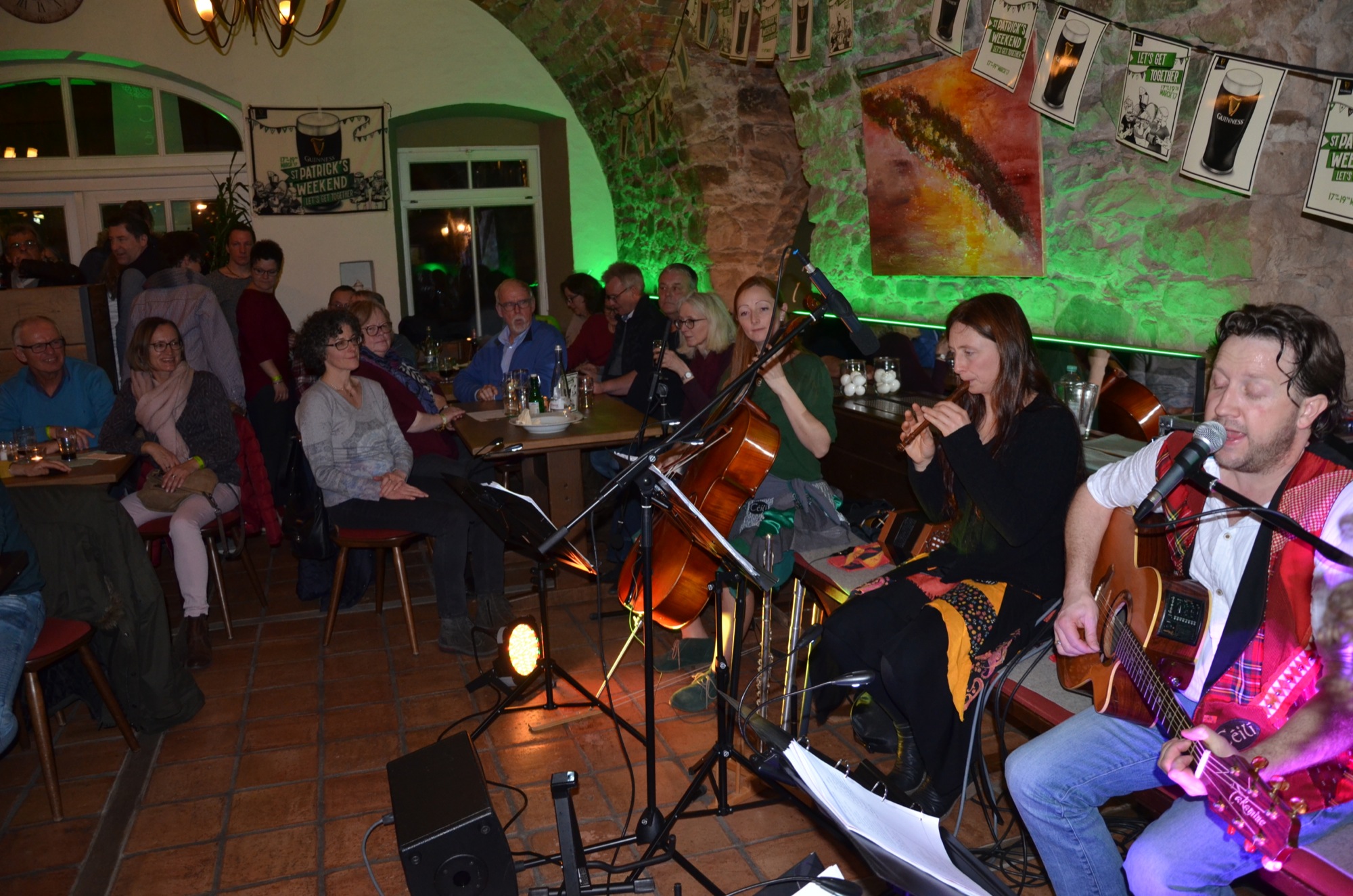 Die Töne der keltischen Harfe, von Tin Whistle, Fiddle und Dudelsack sorgten bei der Musiknacht neben Gitarren, Keyboard und Schlagzeug für die typisch irischen Klangmomente. Die Volksweisen von der grünen Insel, rhythmische Pub-Songs, moderner Folkrock, Rock- und Jazzstandards luden die Besucher zum Zuhören und zuweilen auch zum Mitsingen und Mitklatschen und zum Tanzen ein.