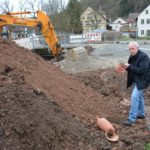 »Wir waren uns schon vor Beginn der Arbeiten bewusst, dass auf dem Wiesengelände neben der Fabrik Keramikscherben abgelagert wurden«, bestätigt Bauunternehmern Hannes Grafmüller und ist nun selbst überrascht, dass hier deutlich andere Fundstücke ans Tageslicht befördert wurden. Mit Favorit- und Hahn-und-Henne-Scherben habe man gerechnet. Das erdfarbene Steingut sehe nun aber ganz anders aus.