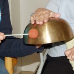 Oder die Tagespflege-Gäste sitzen in Paaren zusammen und schlagen sich gegenseitig die Schalen an. »Das ist für den, der’s bekommt schön, und der, der’s geben kann, der freut sich, dass er was machen kann«, berichtet Stephanie Dharamasena von ihren durchweg positiven Erfahrungen mit den Klangkörpern. Auch auf die Knie kann man sich diese stellen, oder (umgedreht) auf den Kopf.